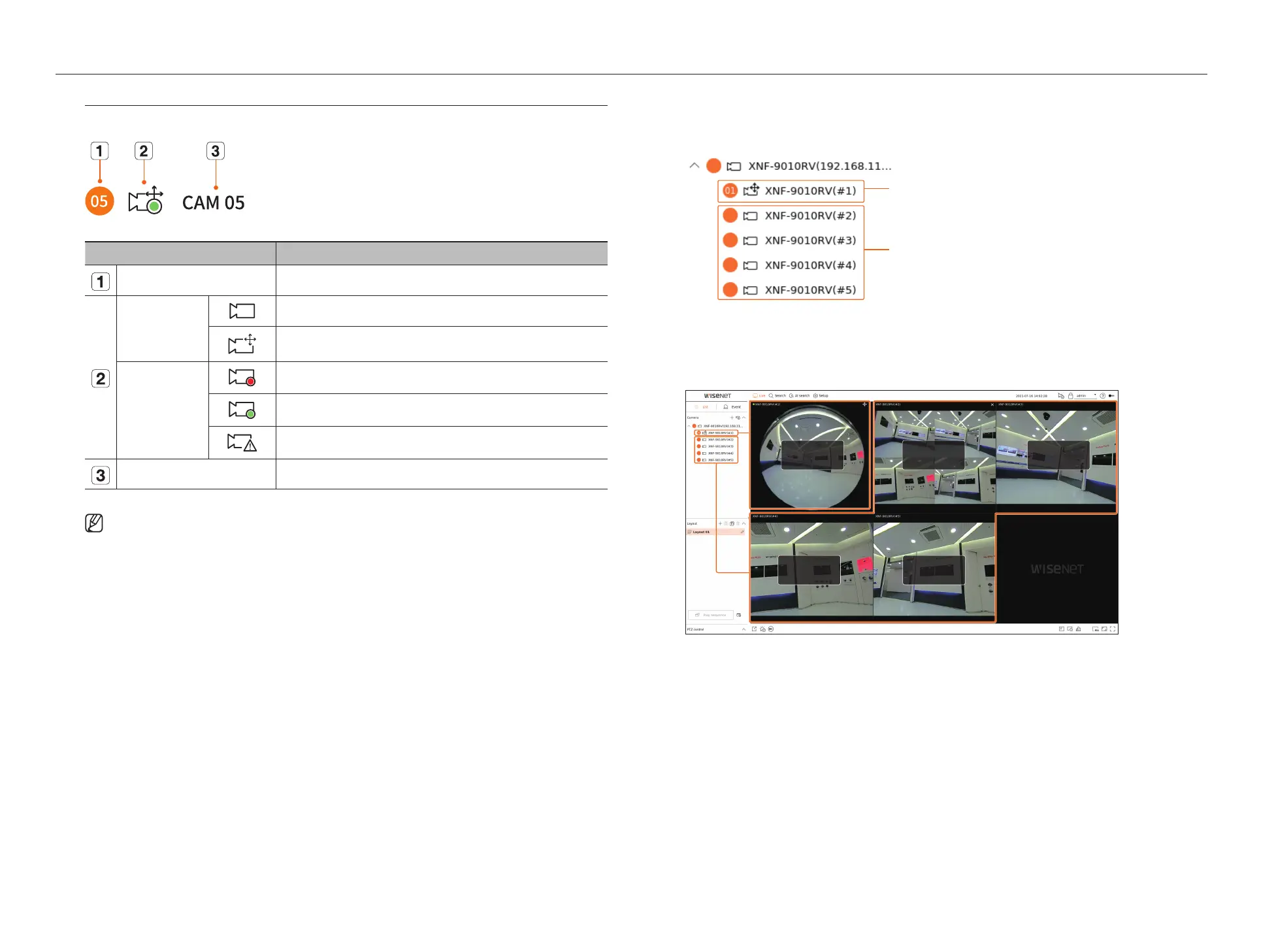 For multichannel cameras registered with the Wisenet protocol, the channel information will be displayed under