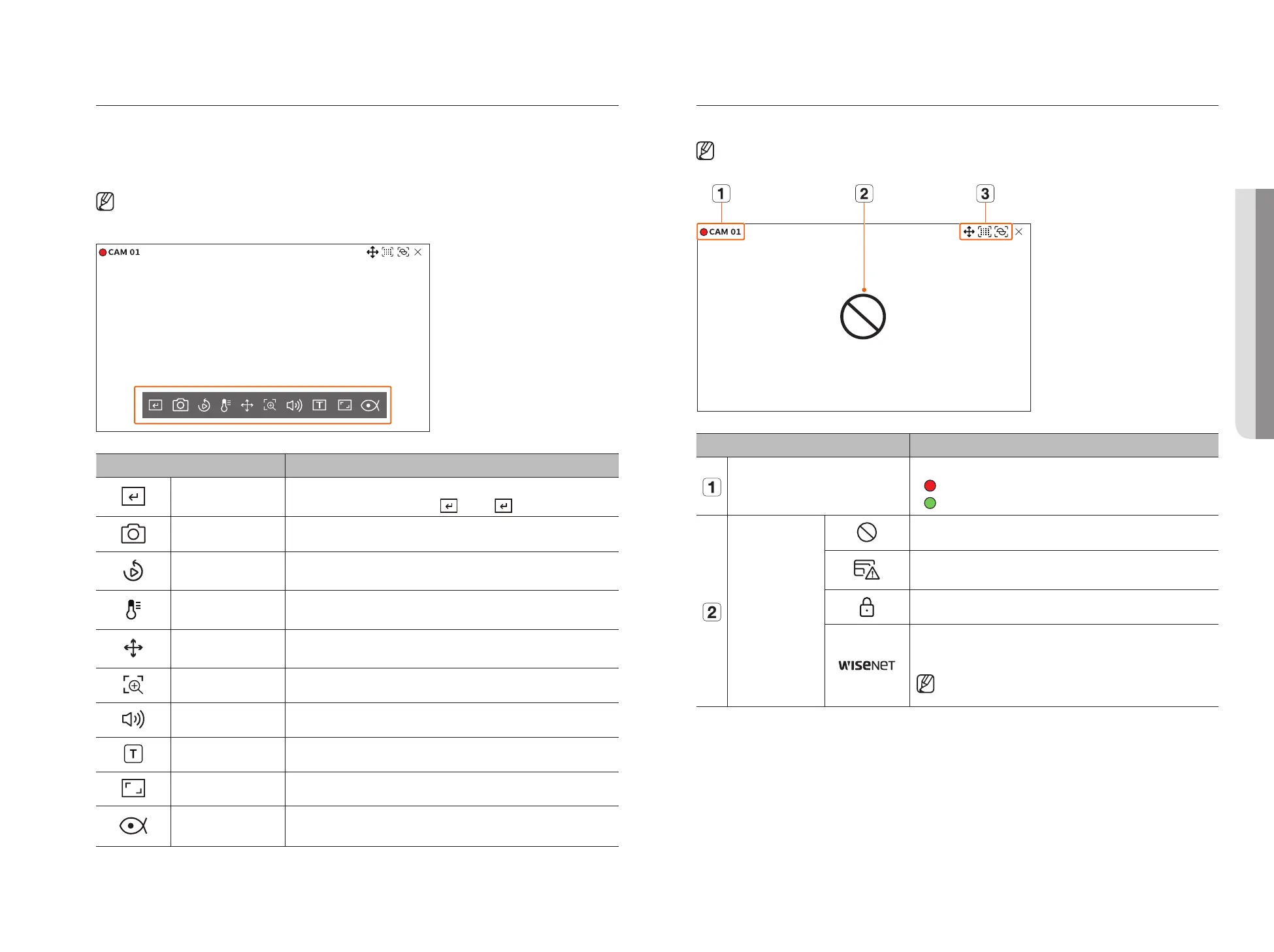 The icons displayed on the screen may differ depending on the type of camera and the user's authority.