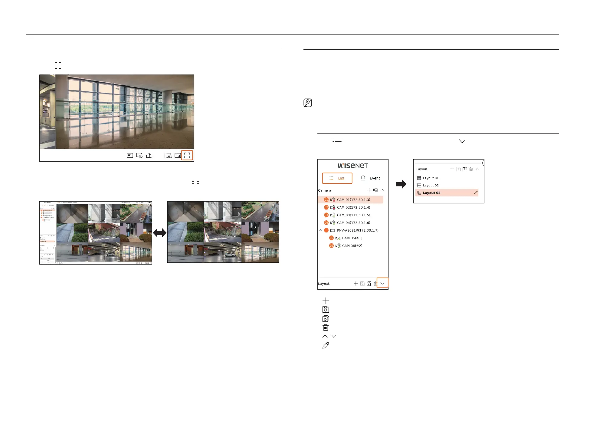 Click < List > at the top left of the live screen, and then click < > to display the layout list.