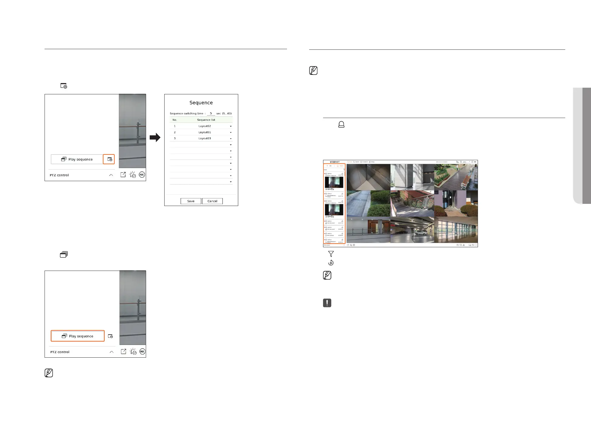Sequence list : Set the layout sequence playback order. You can add the same layout repeatedly.