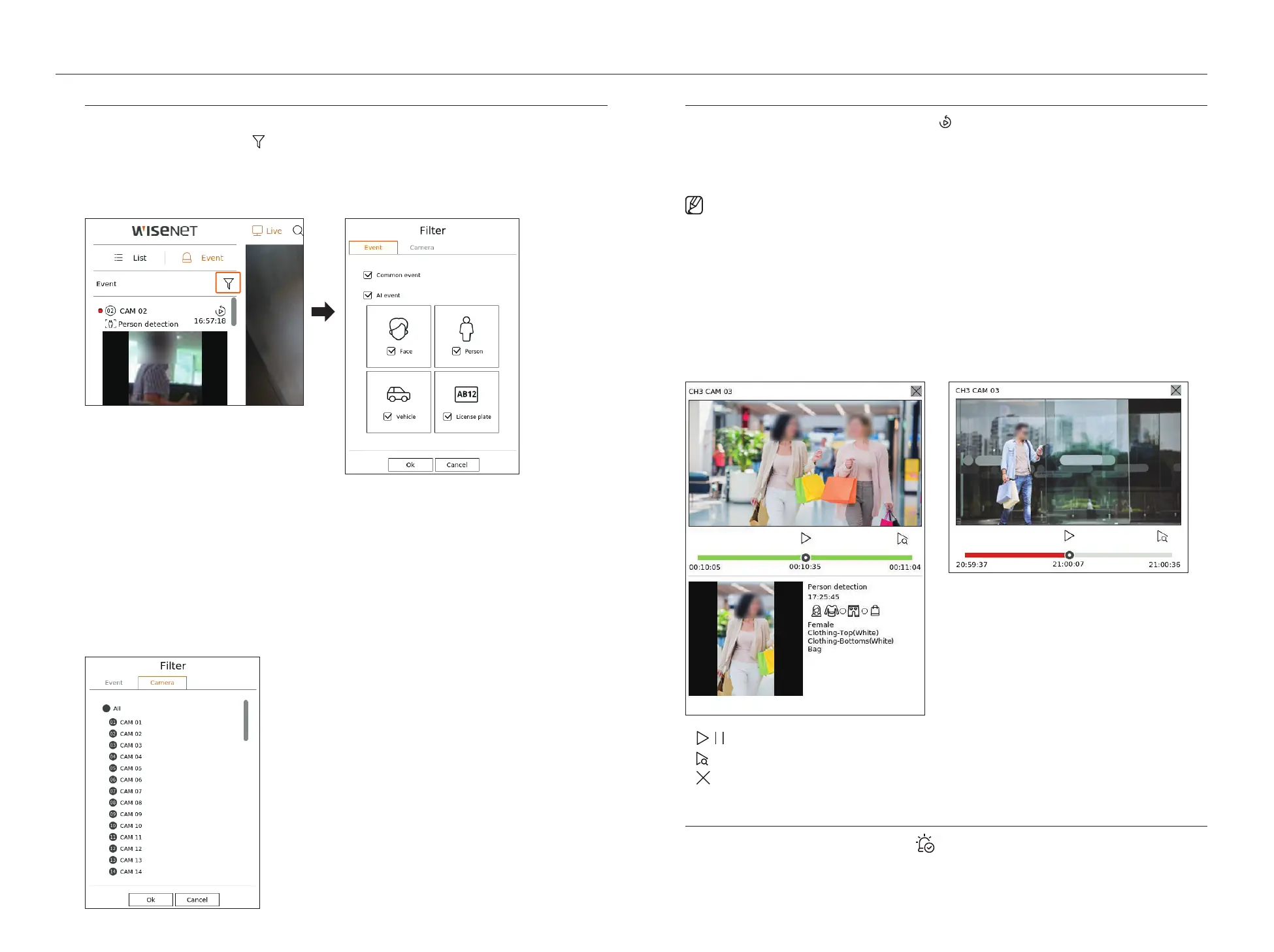 AI events are displayed only after setting event rules. For details, refer to the "Setup > Setting the Event > Event rule setup" page in the Table of