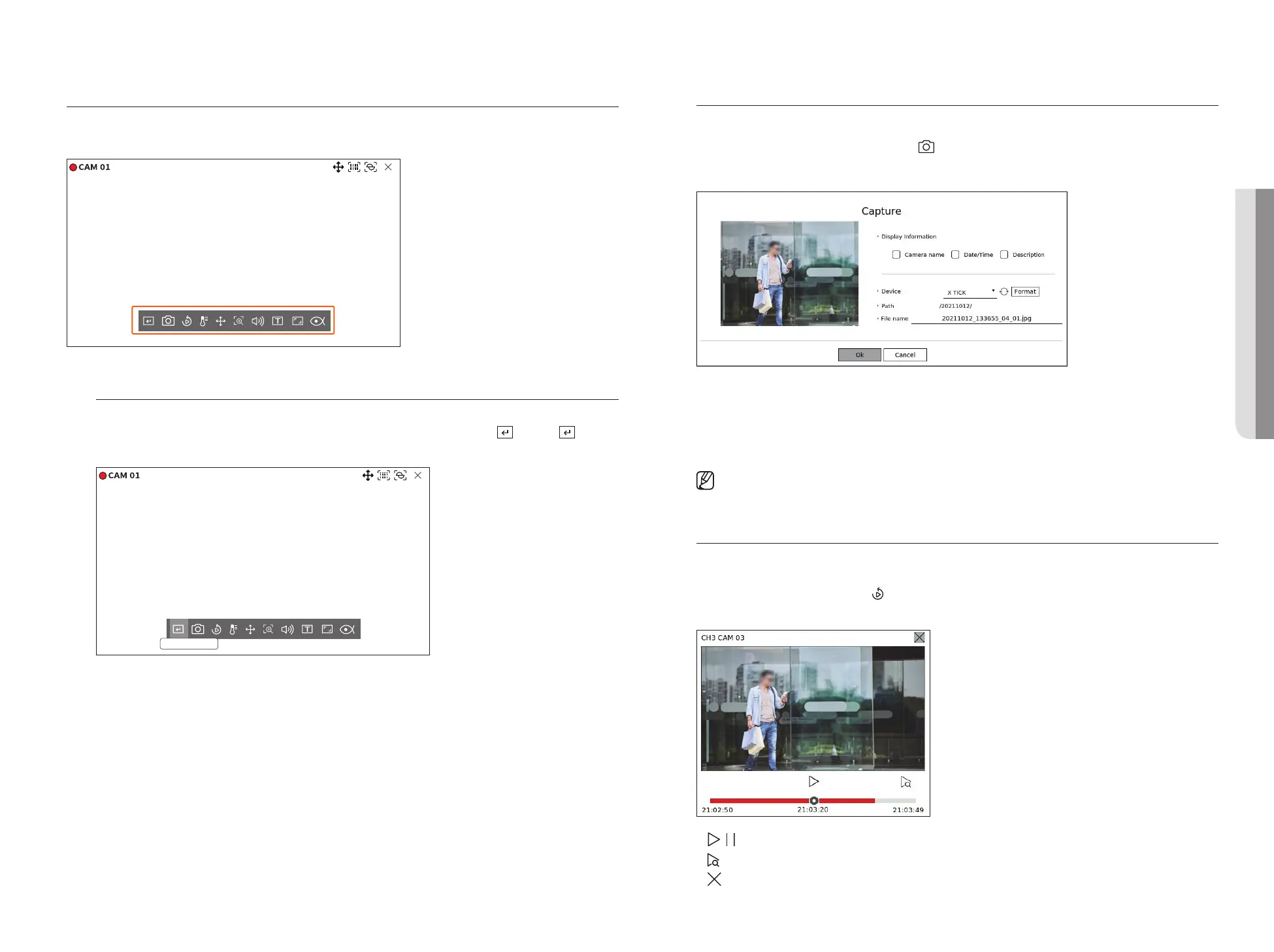 You can take a screenshot of the current video of a specific channel selected on the live screen.