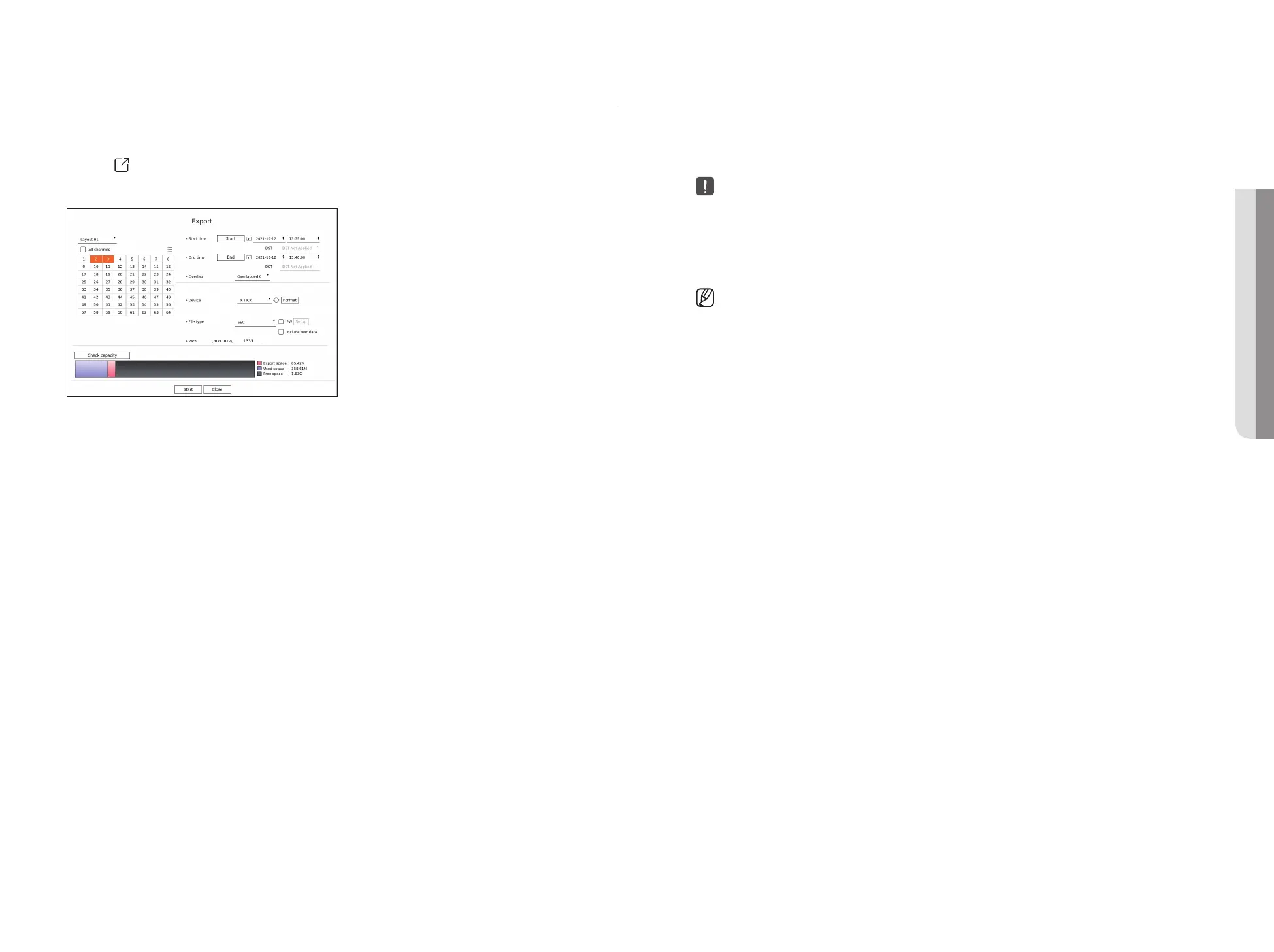 If the export fails, check the current capacity and status to see if the hard disk is connected properly in the "Device > Storage device" menu.