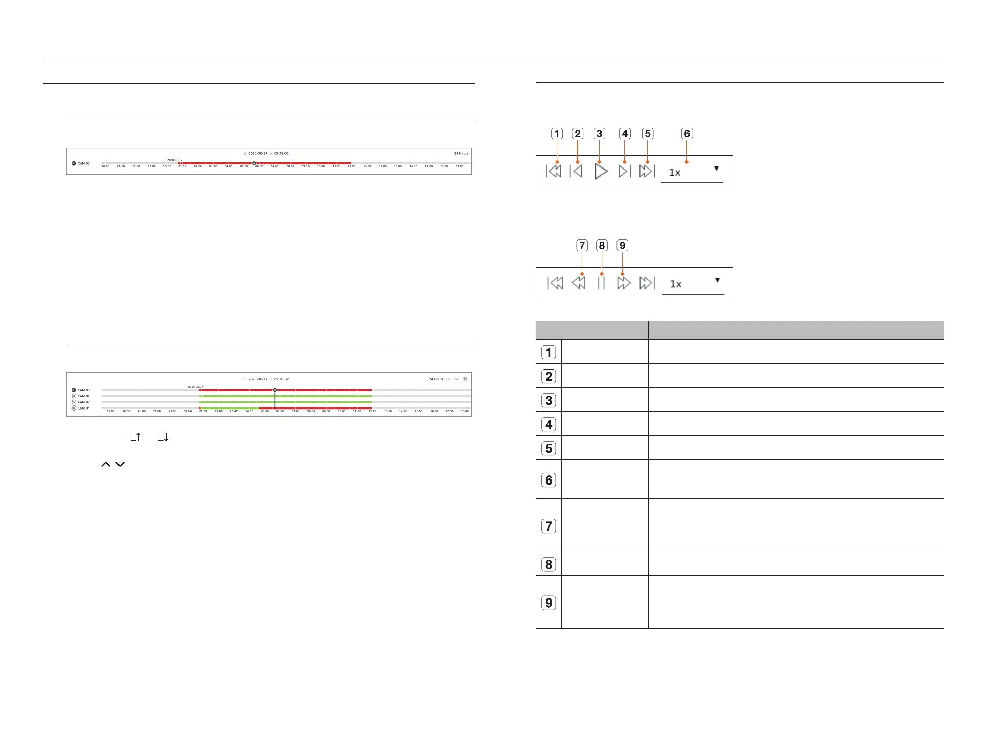 You can click < >, < > to display 1 to 4 channels in the time line. The time line will be displayed as many