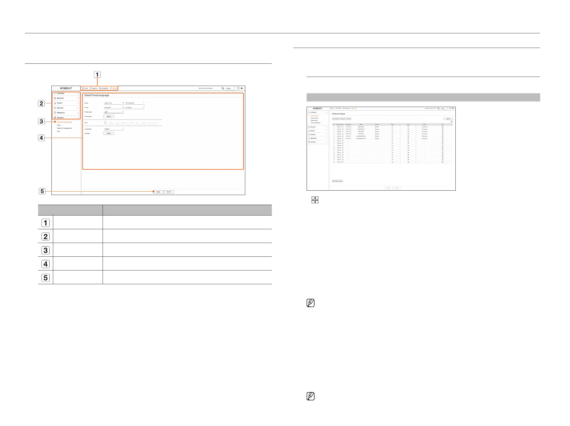 You can access to the channel setup, camera settings, and profiles and camera password-related settings.