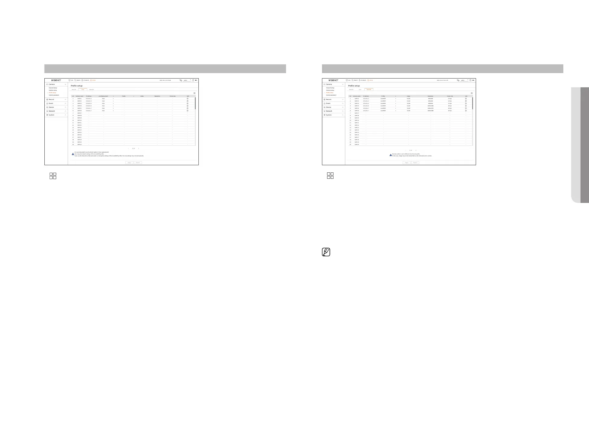 If the profiles used for network and recording are different, camera's video feed may not comply with the frame rate as specified in the