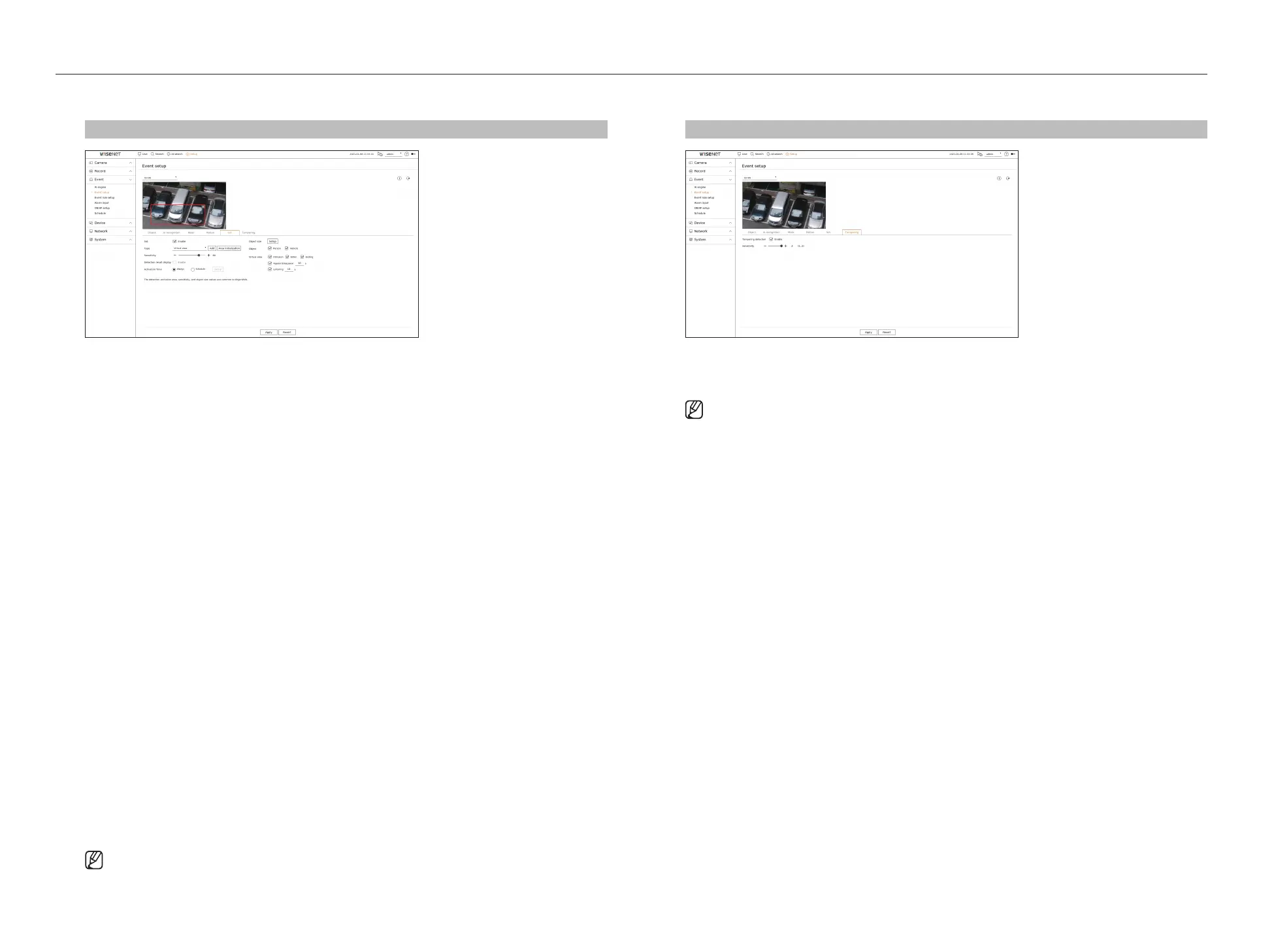 Setup > Event > Event setup > Tampering