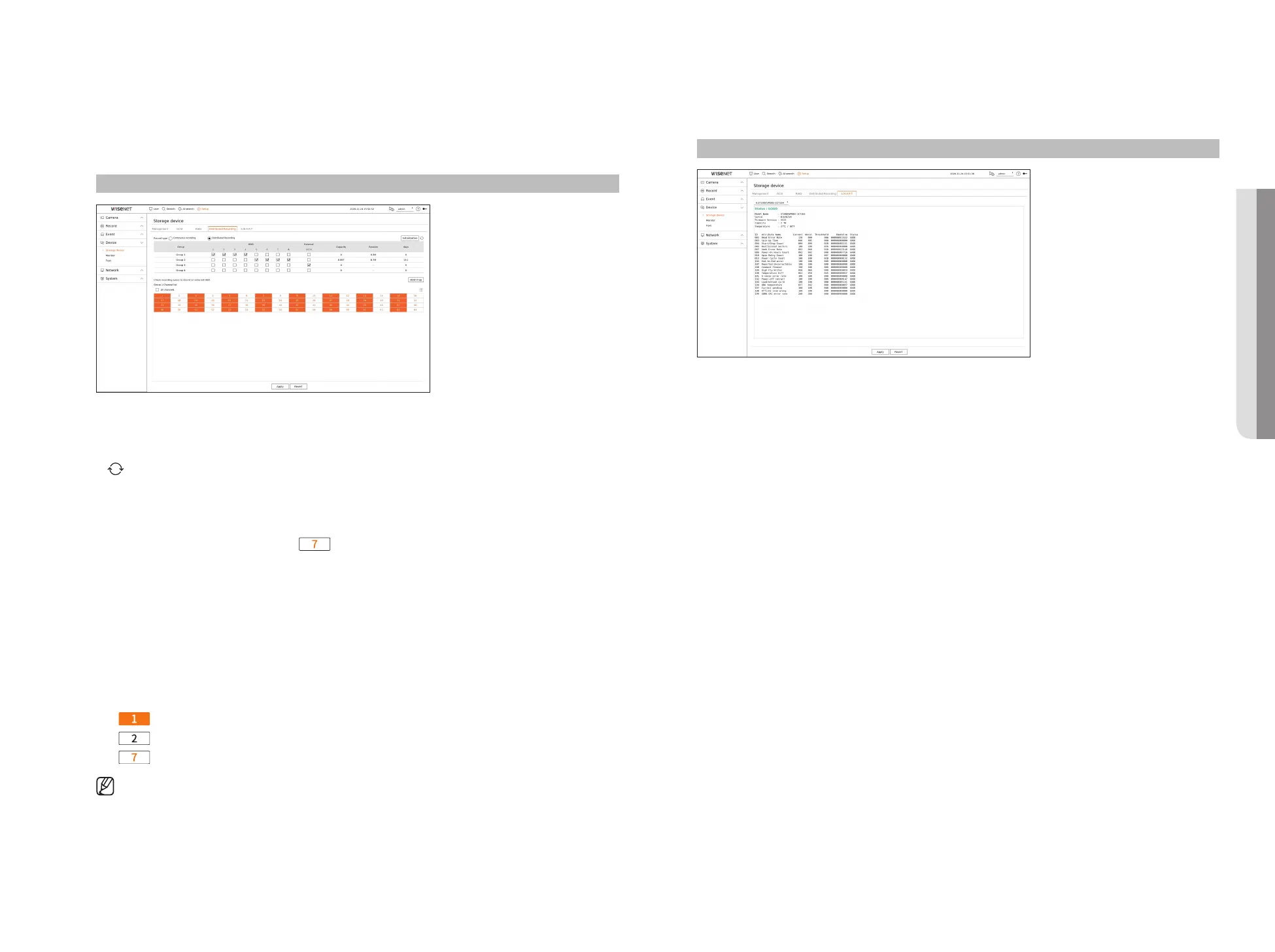 Setup > Device > Storage device > Distributed recording