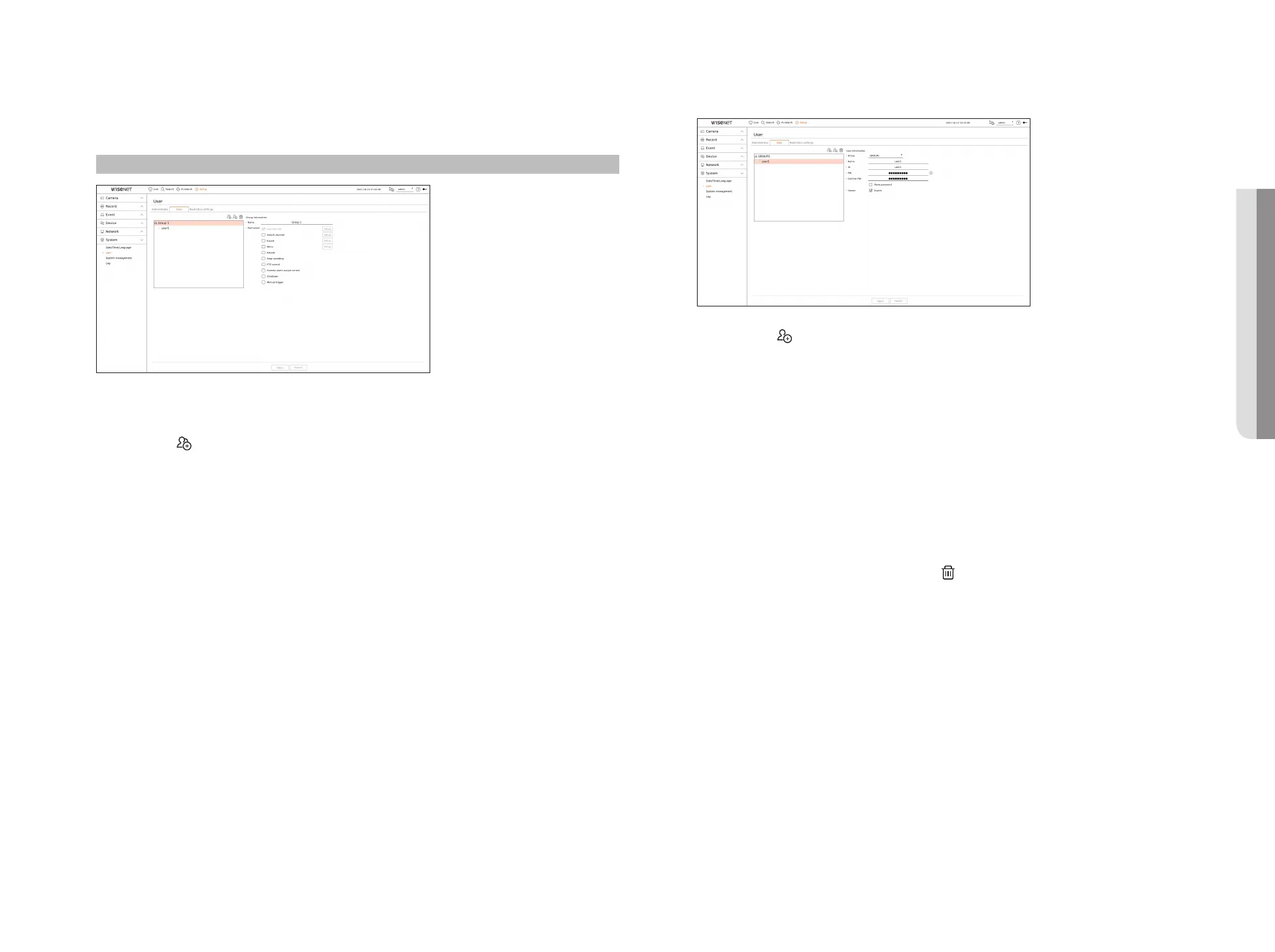 1. Click on the < > button to launch the user addition popup window.