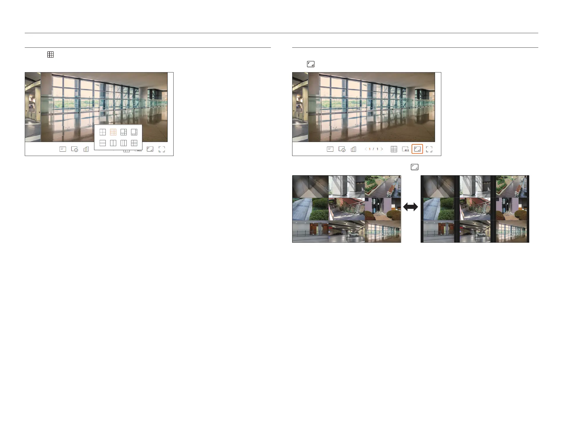 Click the < > button and select the desired split screen.