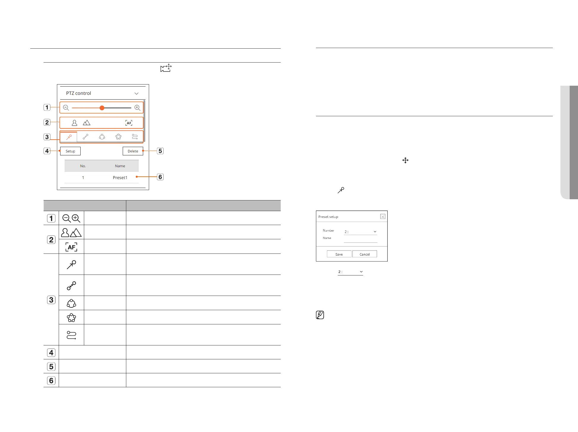 some of the <PTZ control> function menus.