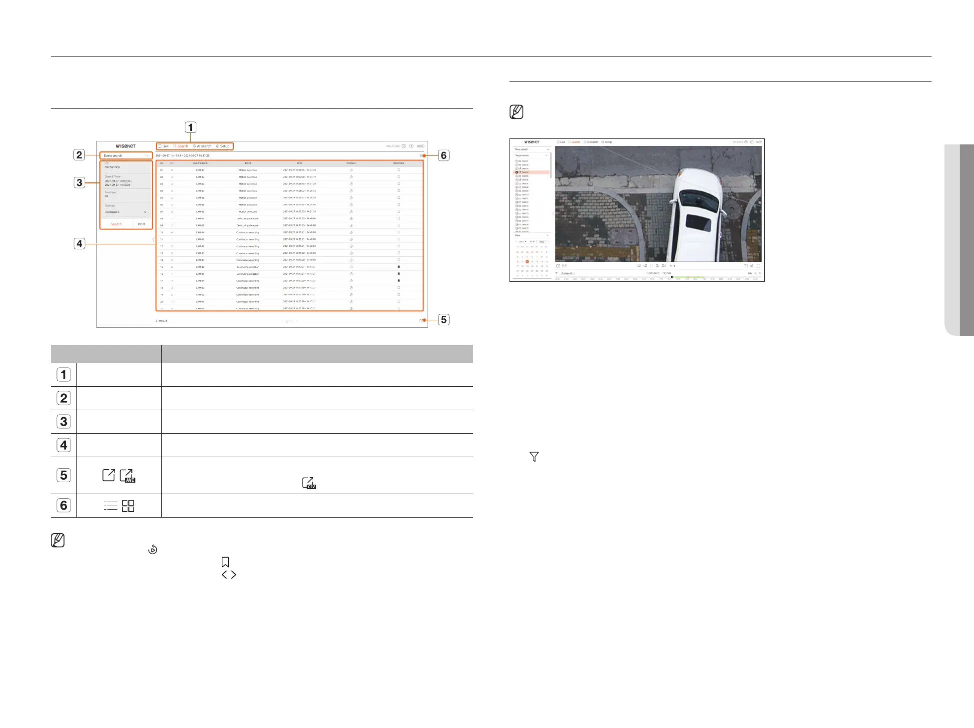 Search conditions You can set various search conditions, such as date/time/event.