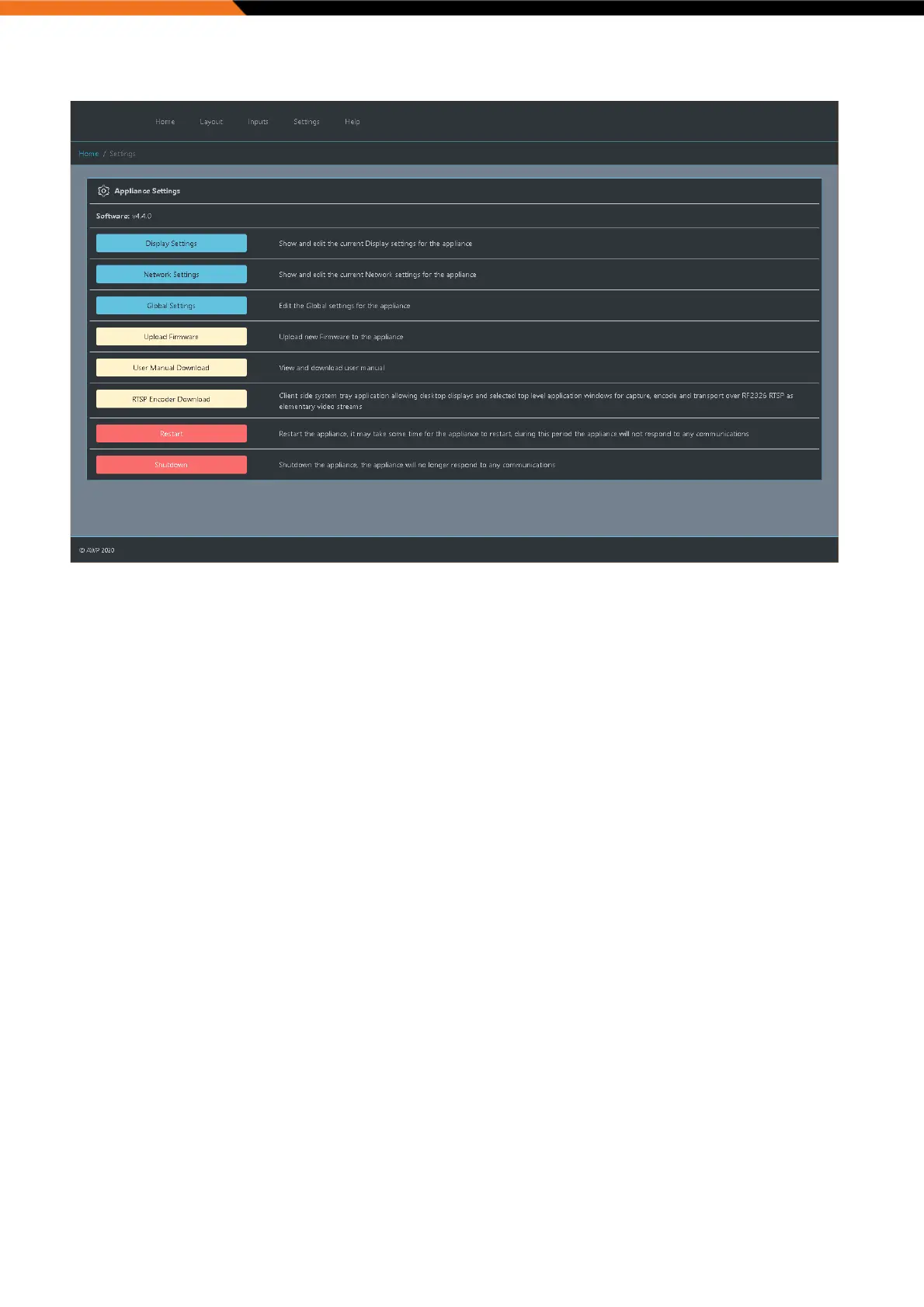 The remote display settings page allows the user to arrange the display layout on the video wall appliance.