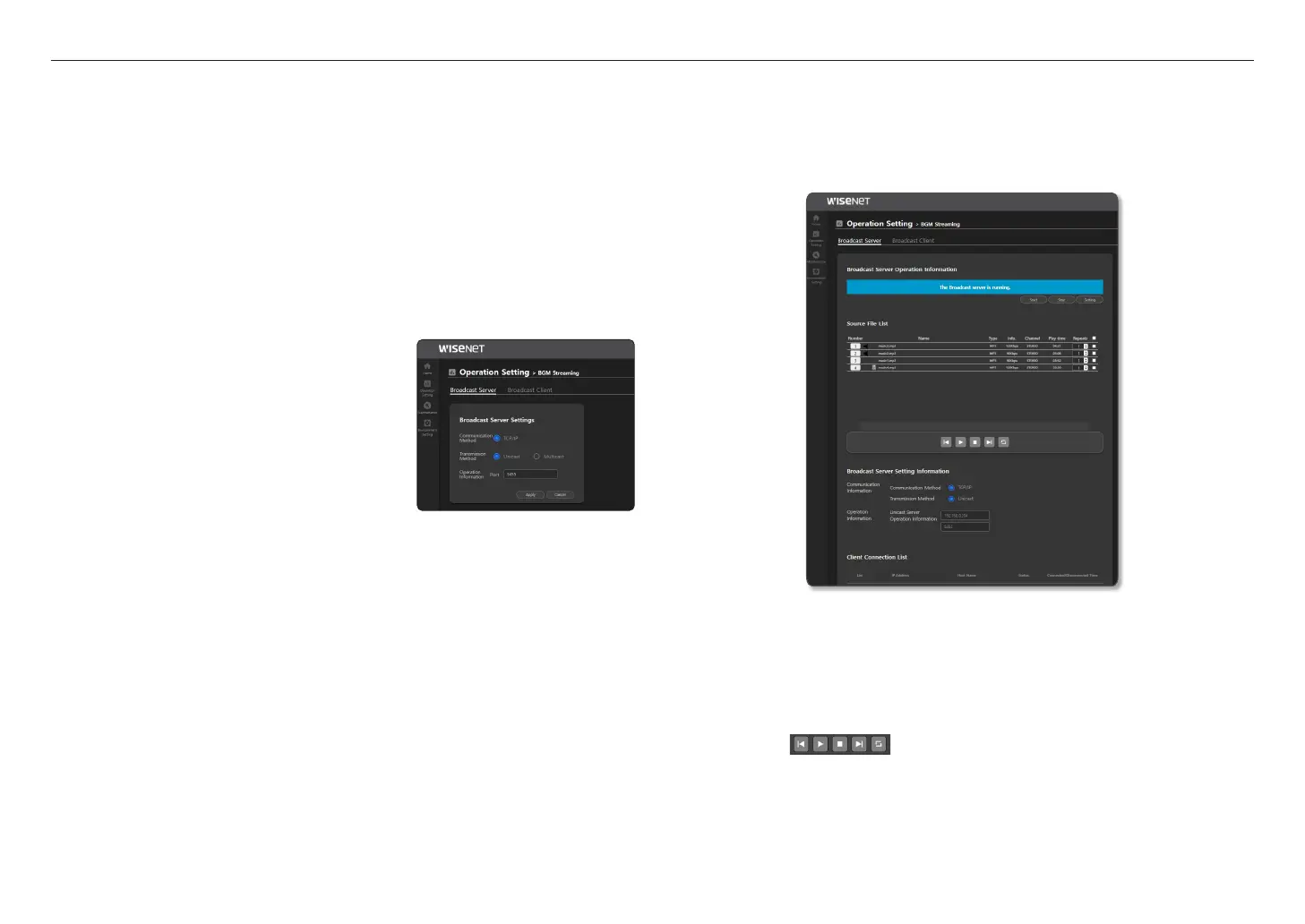 2. The <Broadcast Server Settings> and <Broadcast Client Settings> screens are displayed when