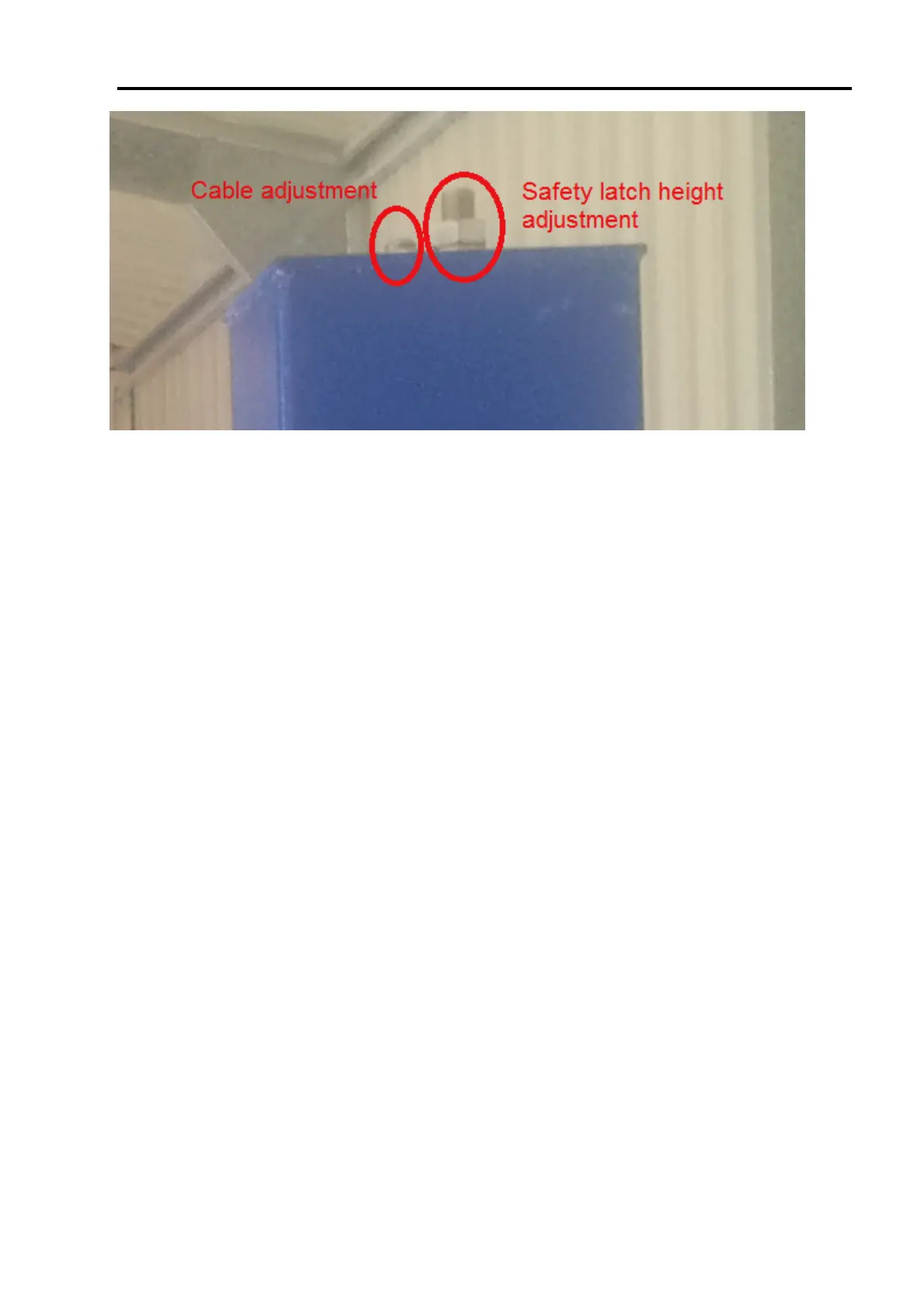 The cable adjustment is used to adjust the lifting of the hoist, this will ensure that safety