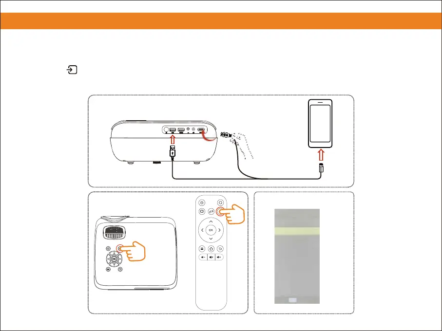 Plug the 'HDMI' and 'USB' in the projector and plug the Lighting connector in the iPhone.