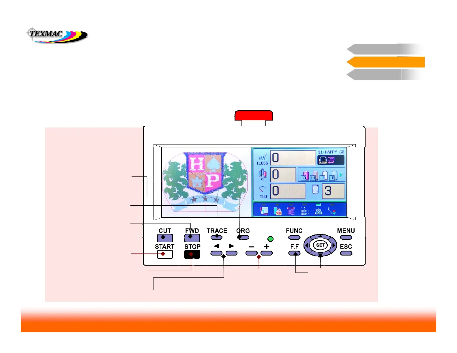 Needle Select Keys change the currently-selected needle while machine is stopped.