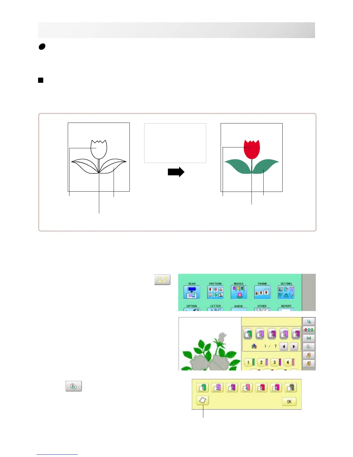 This is useful to help confirm the correct color setup of a pattern. (128 colors are available)
