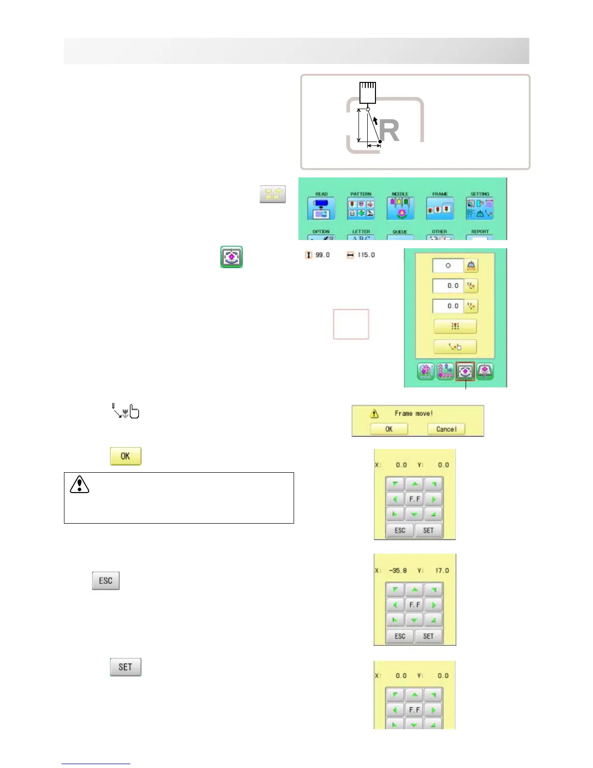 5. Move the frame to the pattern start point.
