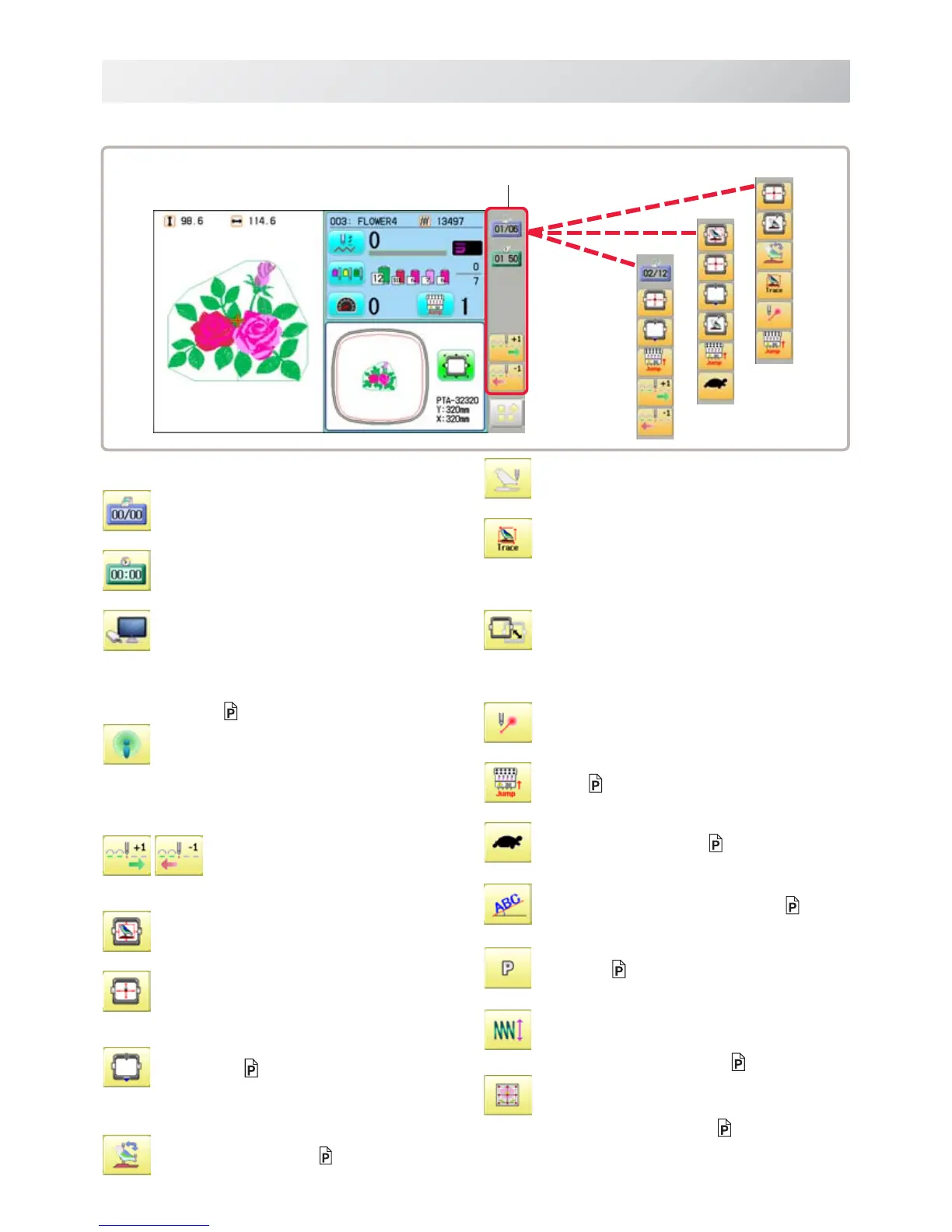By pressing this icon, you can retrieve embroidery