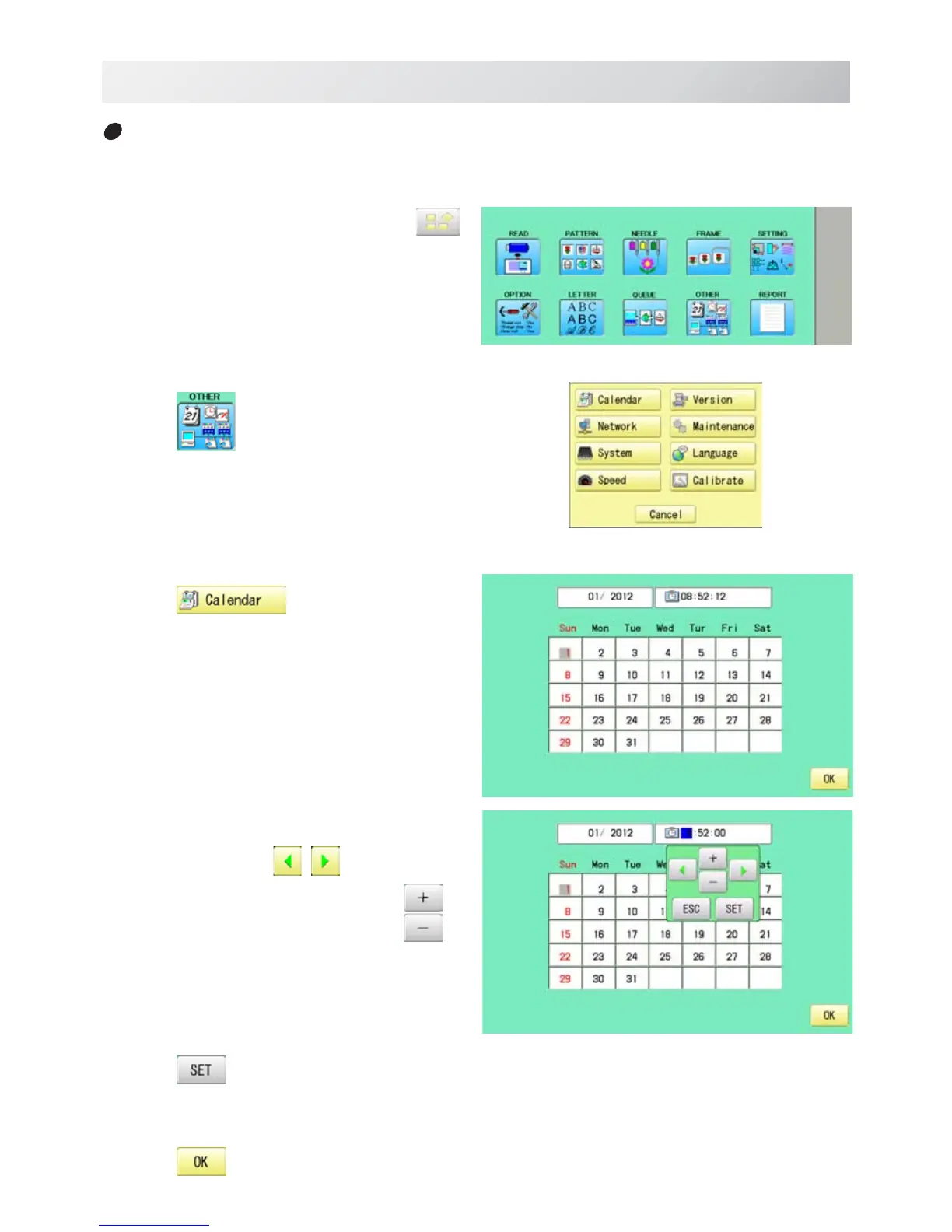 Setting the calendar and clock lets the machine advise when oiling and other maintenance is