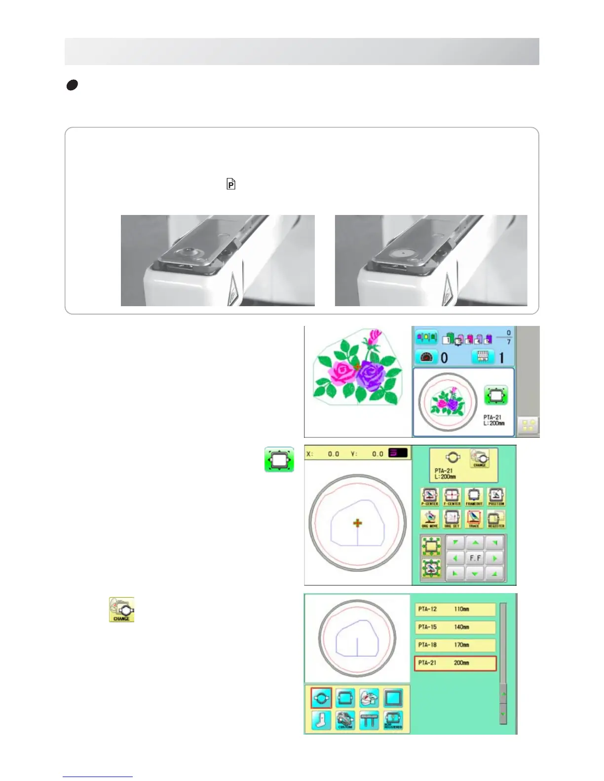 Please attach the frame base to the carriage when you wish to use a tubular embroidering hoop.
