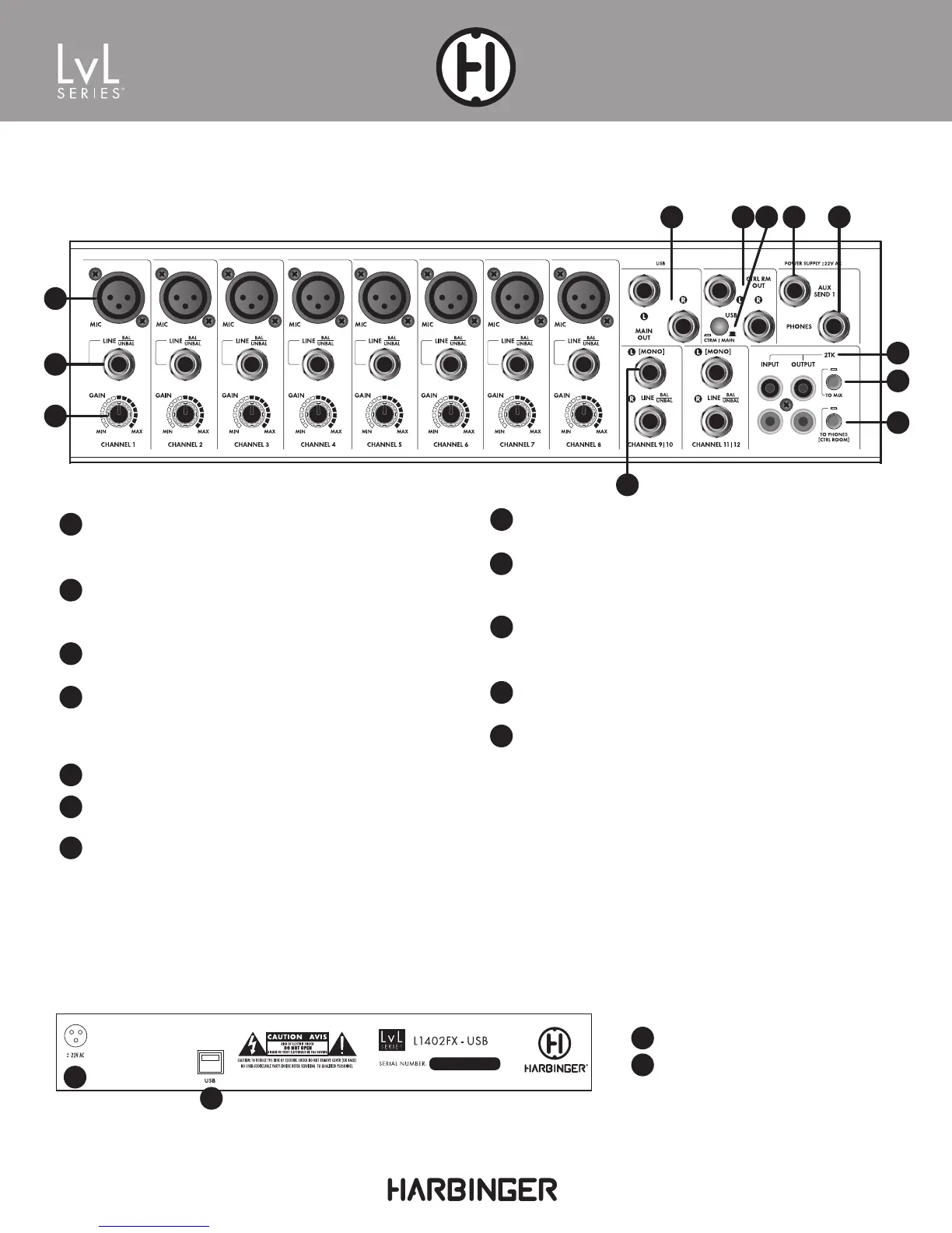 Mic Input: XLR connector for a microphone-level signal. This
