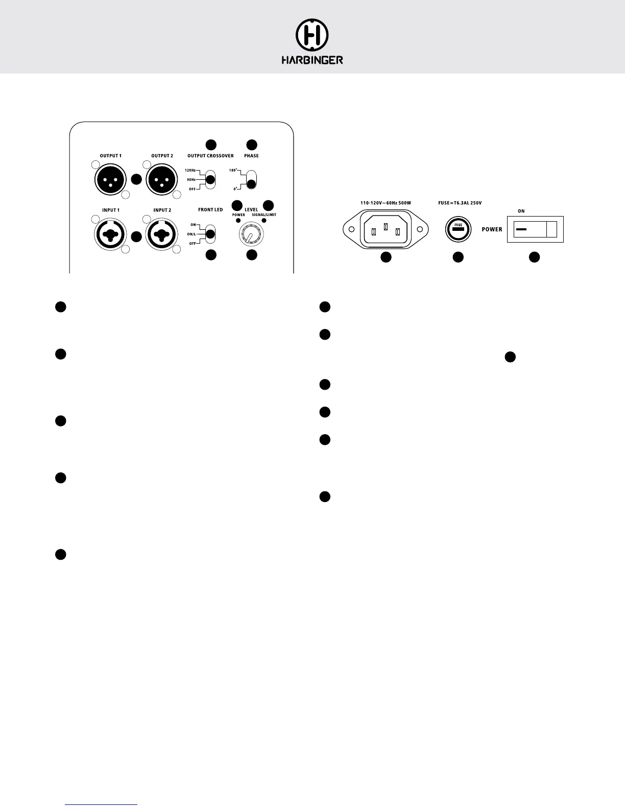 Harbinger V2315 - V2318 S Subwoofer Back Panel Overview; Input, Output, and Crossover Configuration