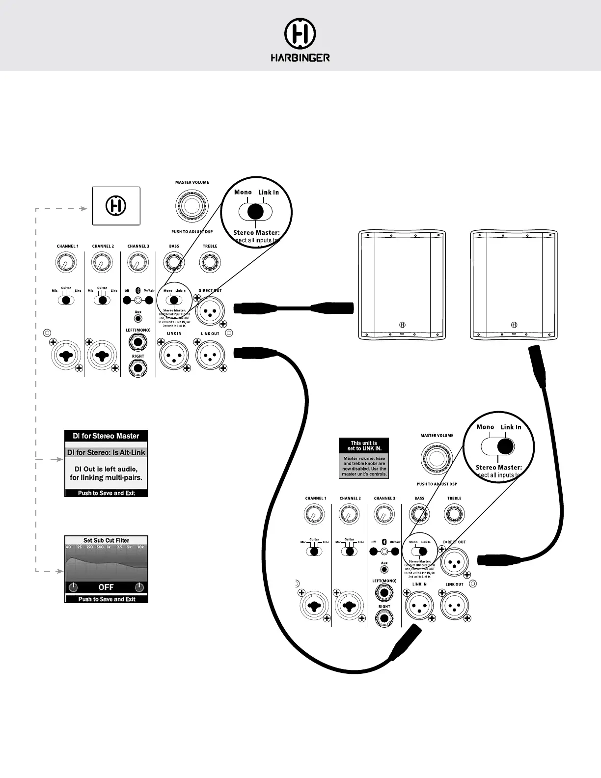 In this configuration, signal to subwoofer is post-EQ and post-Master Volume, so audio sent to subwoofer is effected by VARI’s Master Volume and