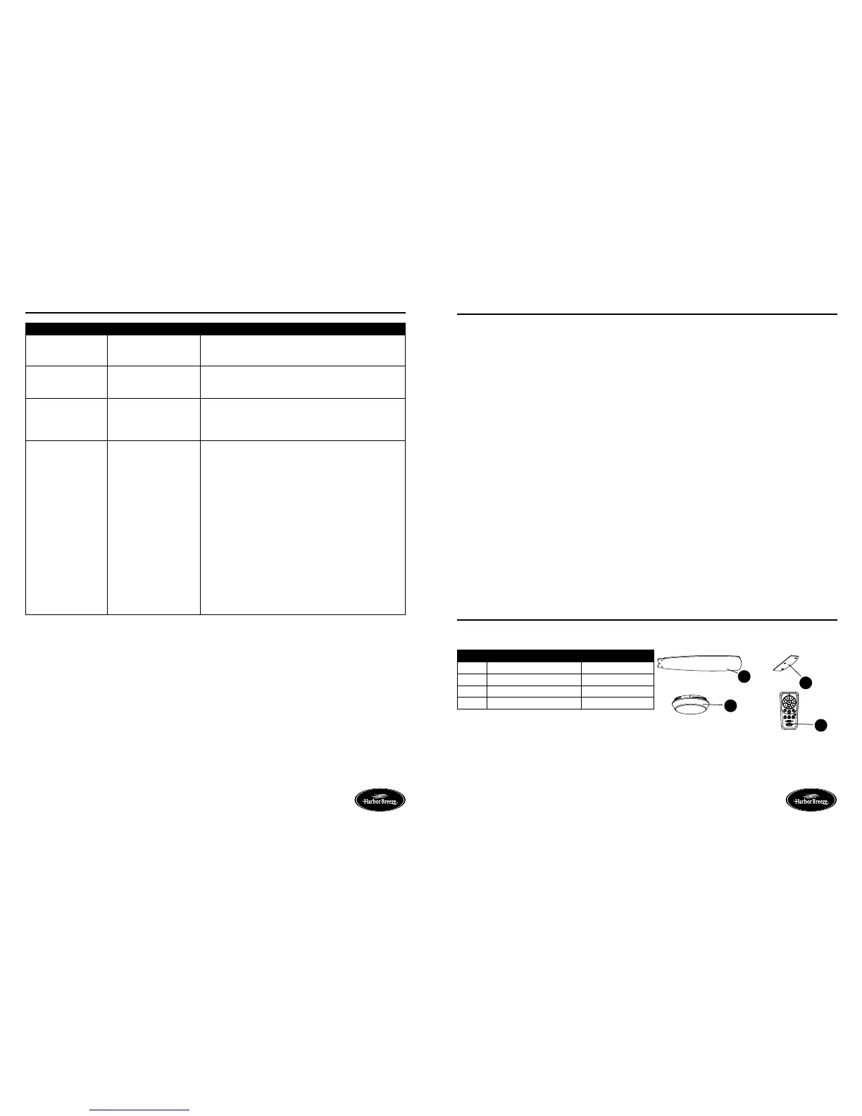 the ceiling fan. Any fan or parts returned improperly packaged is the sole responsibility of the