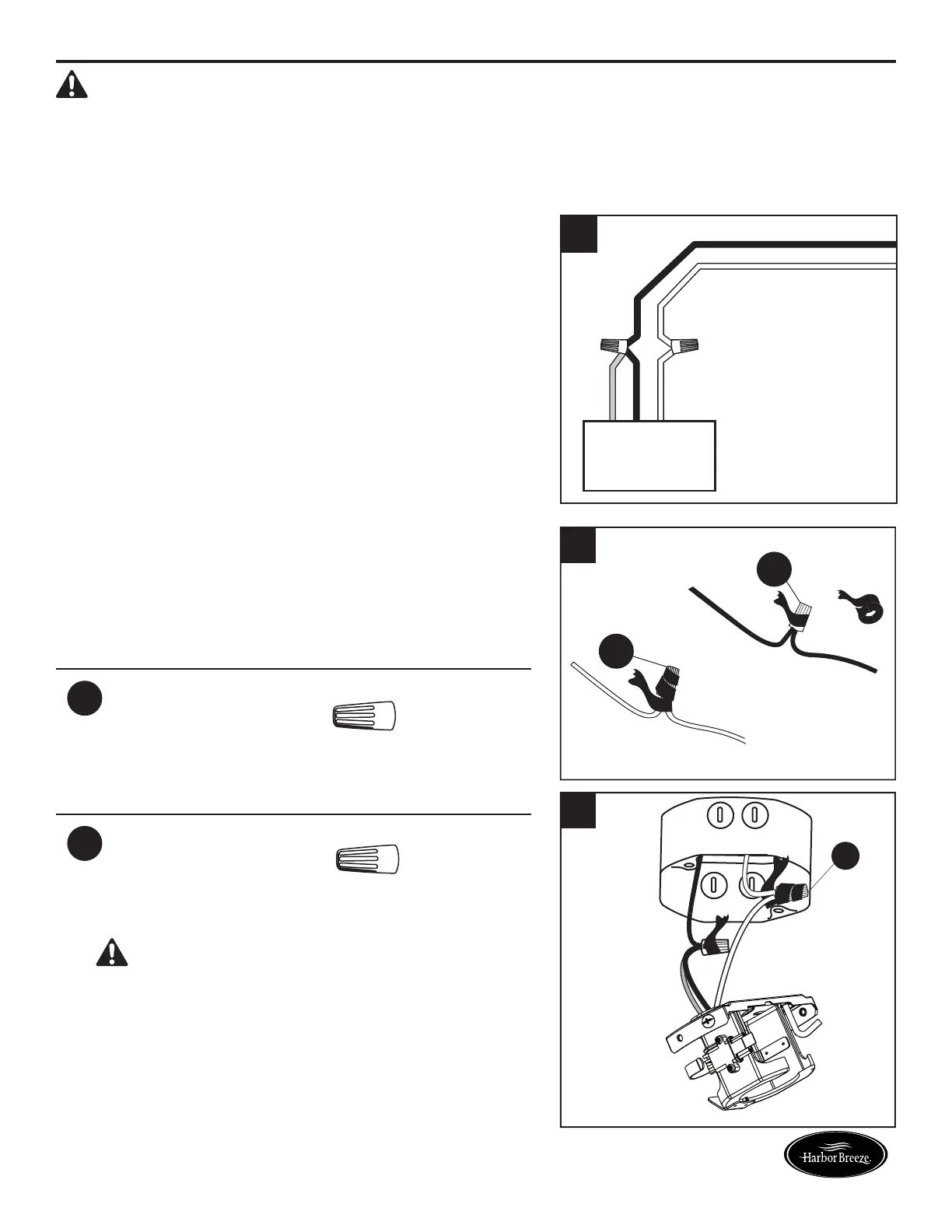 to the two fan lead wires, consult an electrician for the proper size wire connectors to use.