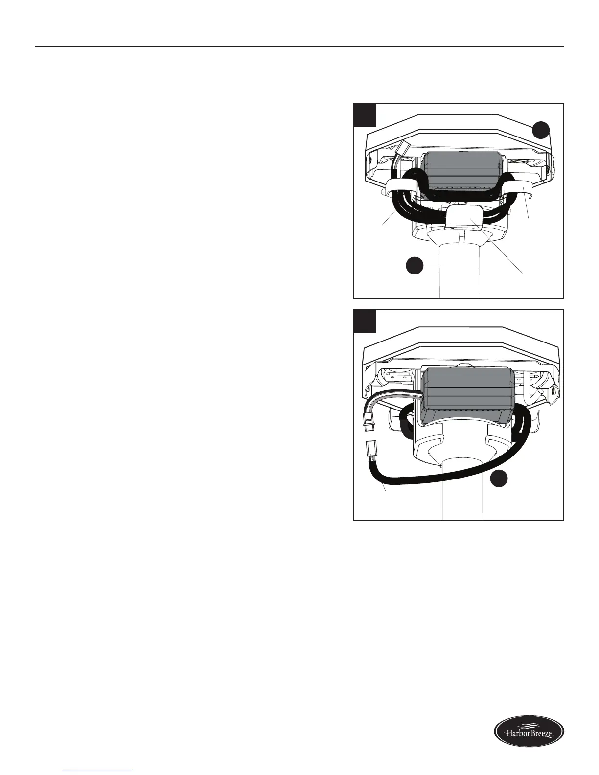 downrod (A) around the wire hooks on the back of