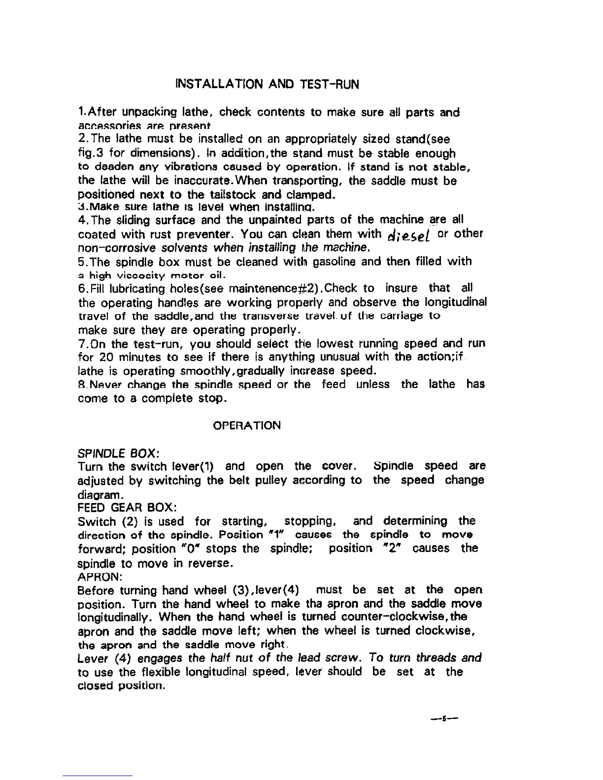 Harbor Freight Tools 31316 - Installation, Test-Run, and Operation; Installation and Test-Run Procedures; Operation Control Systems