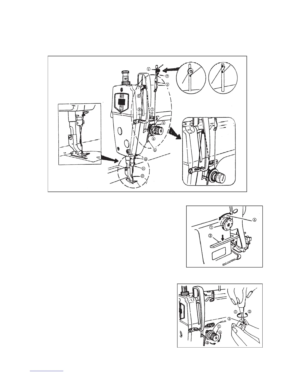 Set the thread spool on its holder and guide the thread through the machine as illustrated