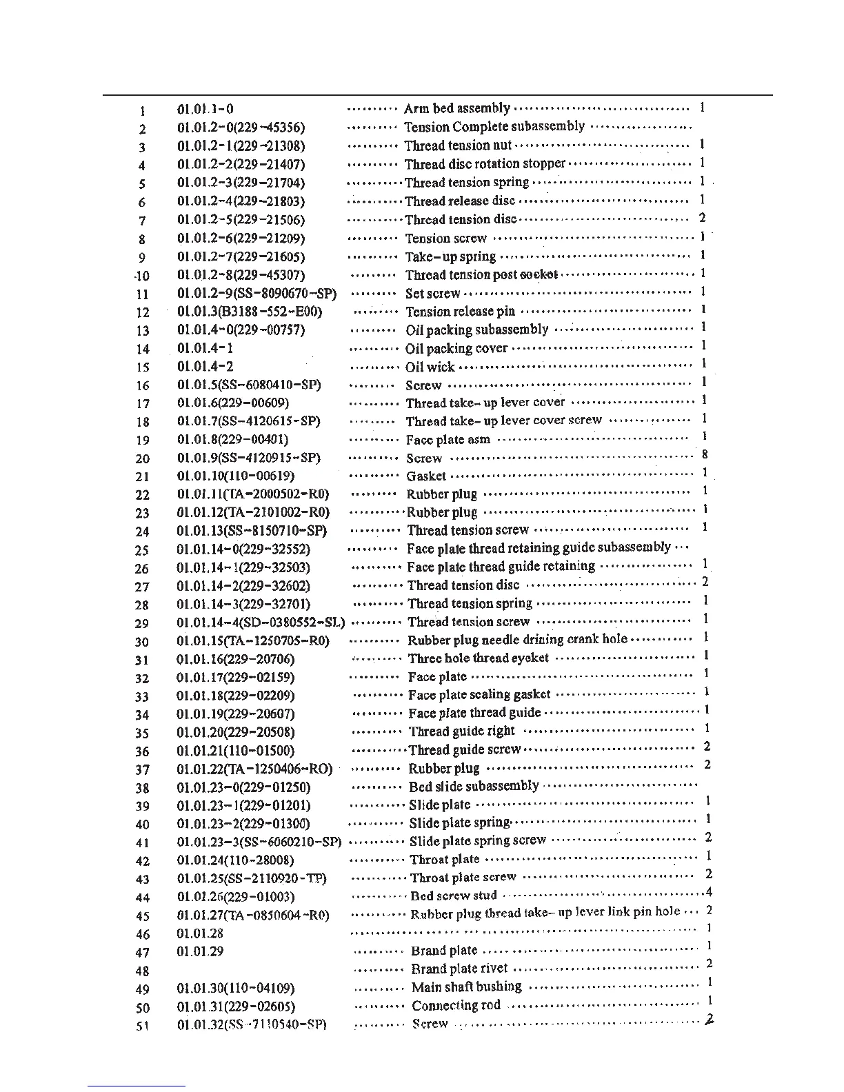 ARM BED PARTS LIST