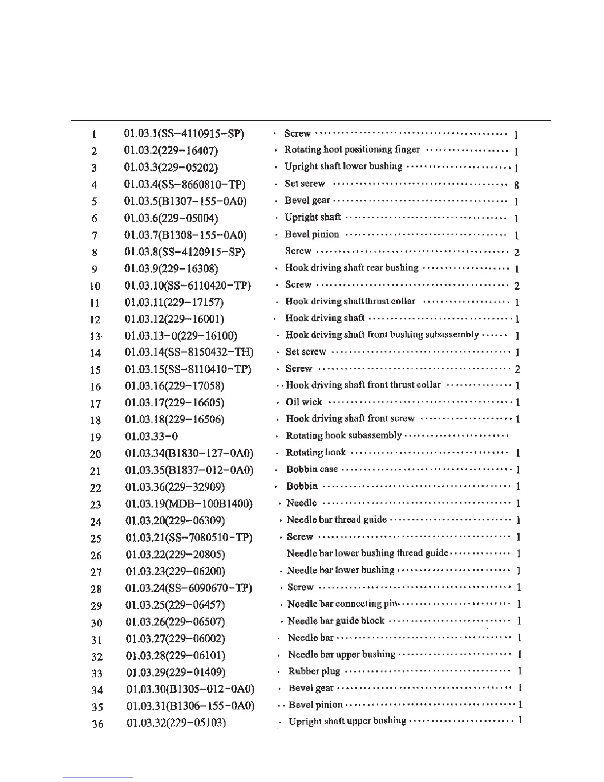 FABRIC--PIERCING HOOK DRIVING PARTS LIST