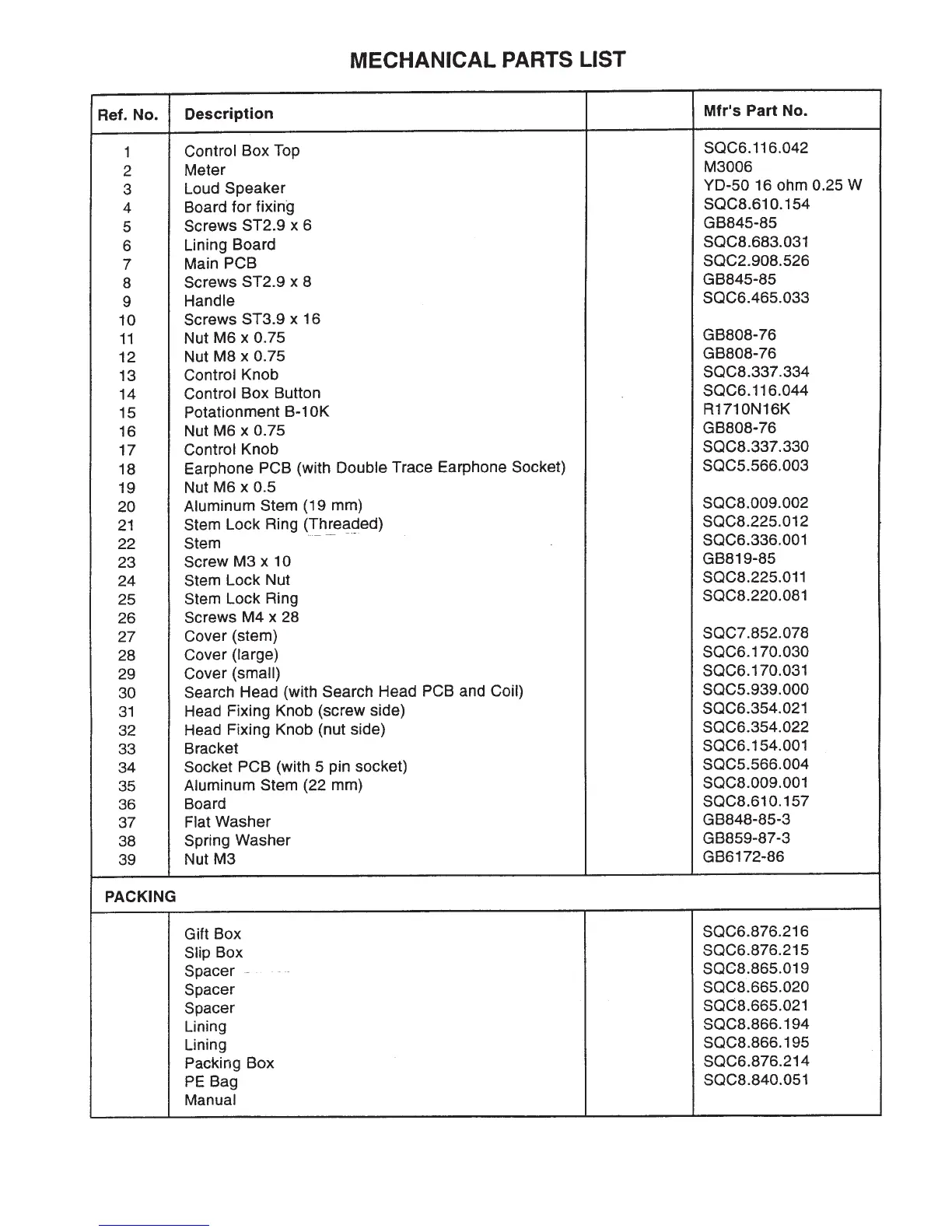 Harbor Freight Tools 43149 - Mechanical Parts List