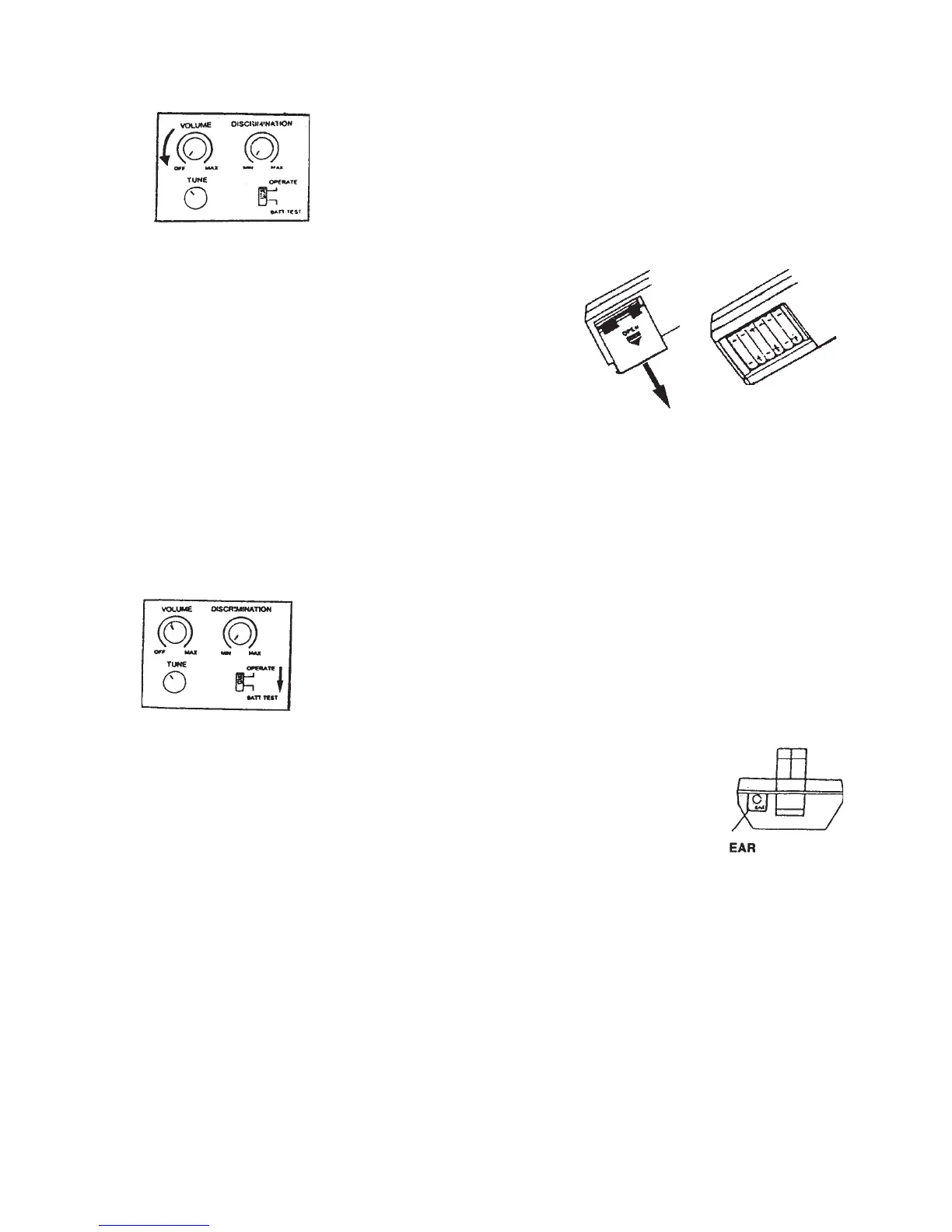 Rotate VOLUME away from OFF and set OPERATE / BATT to BATT TEST