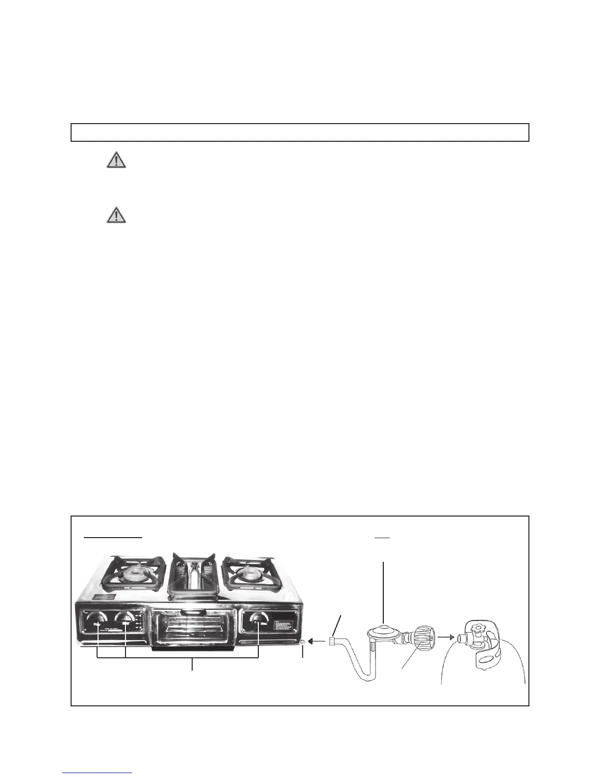 Propane Stove, remove the plastic protective cap from the Inlet Connection