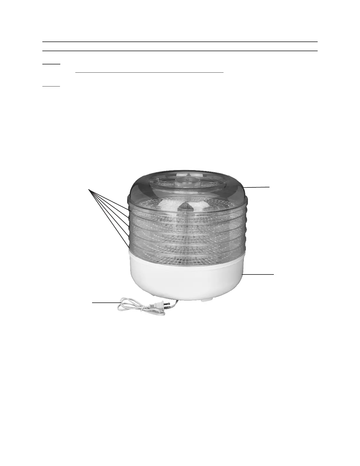 Before using, make sure the Dehydrator unit is unplugged. See 1. FIGURE 1 and the