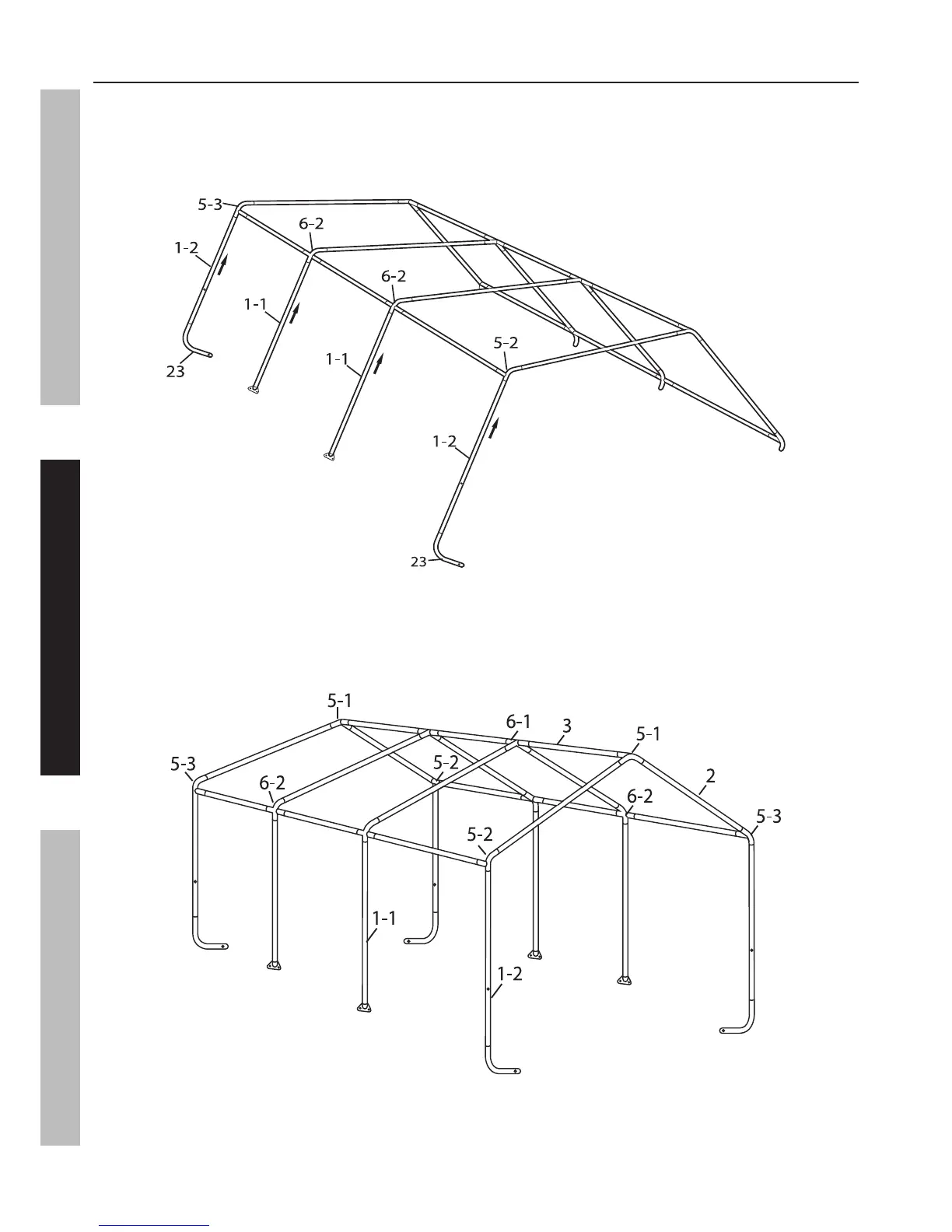 into the 3-Way Side Connector A/B (5-2, 5-3) with the Corner Legs (23) facing inward.