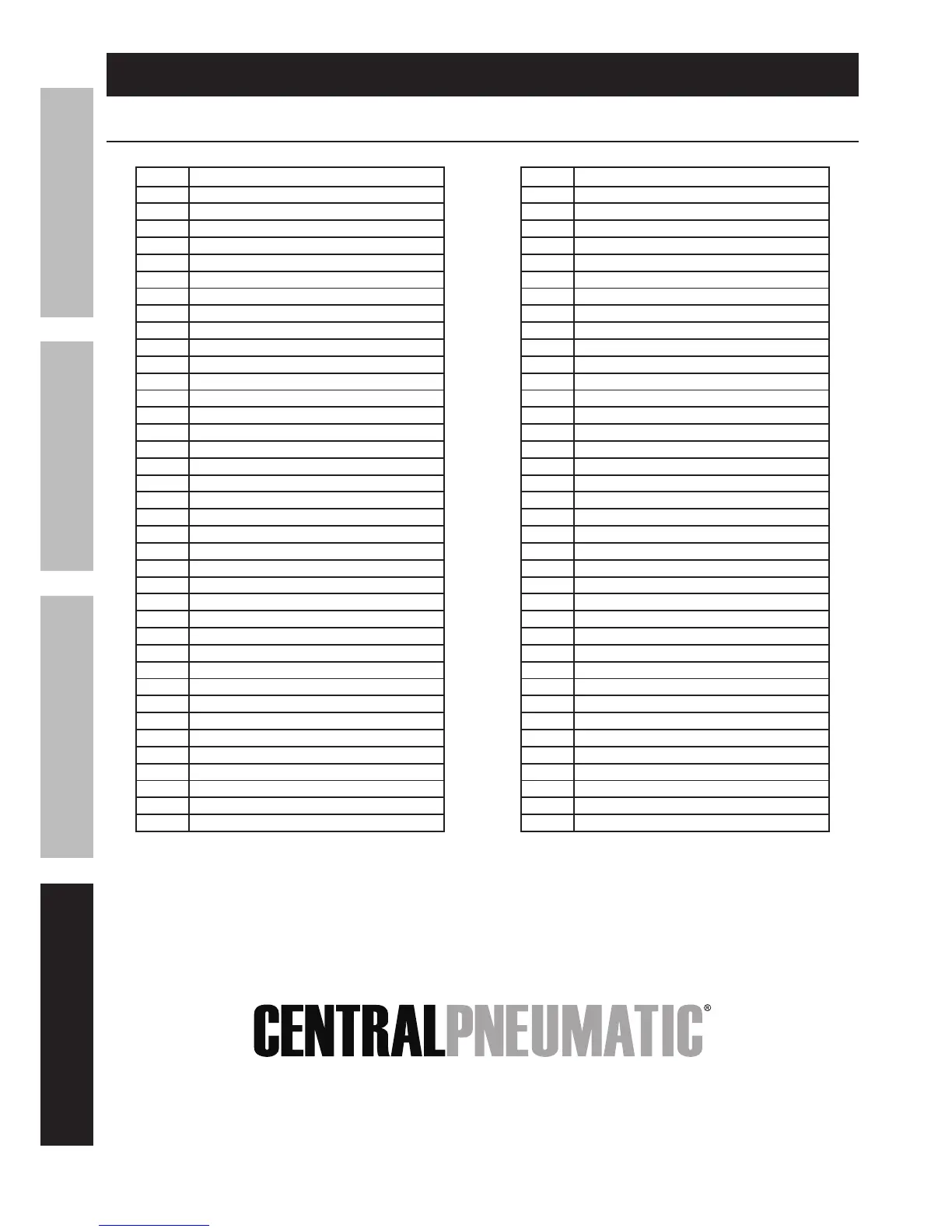 Harbor Freight Tools Central Pneumatic - PARTS LIST AND DIAGRAM; Parts List