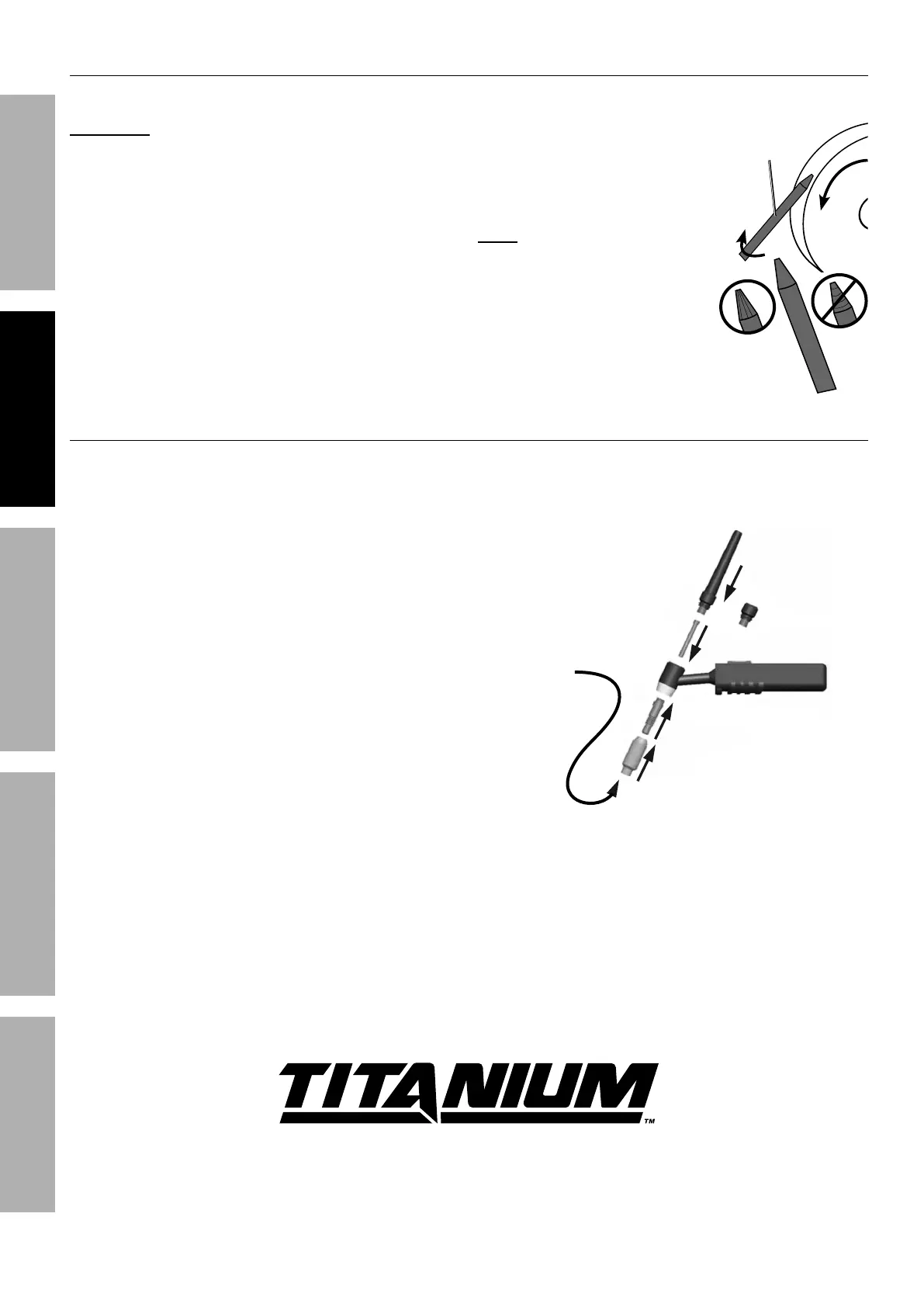 To avoid Electrode contamination, dedicate a fine grit grinding wheel exclusively to Electrode grinding.