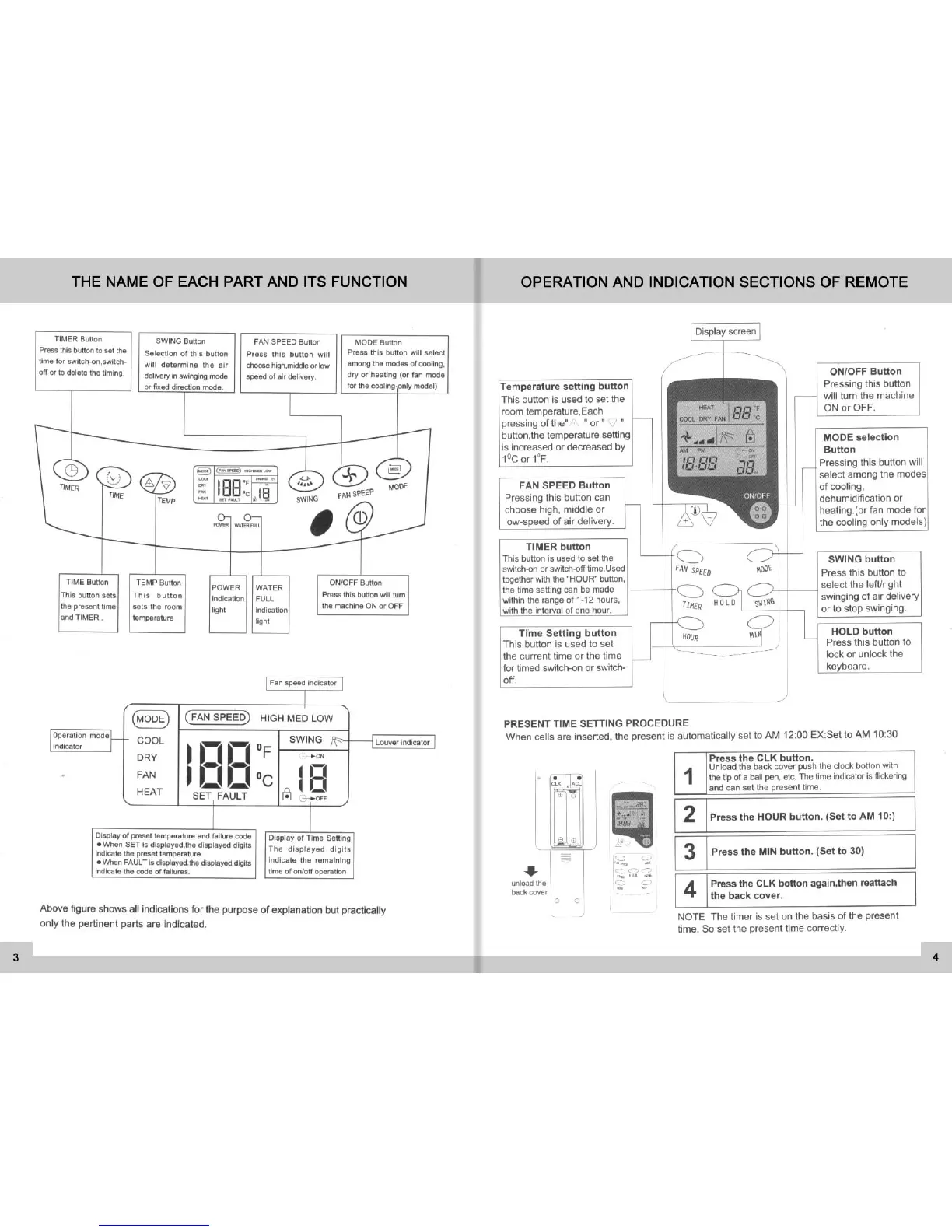 Harbor Point HP9CP - Remote Control Operations; Remote Control Operations and Indicators; Present Time Setting Procedure