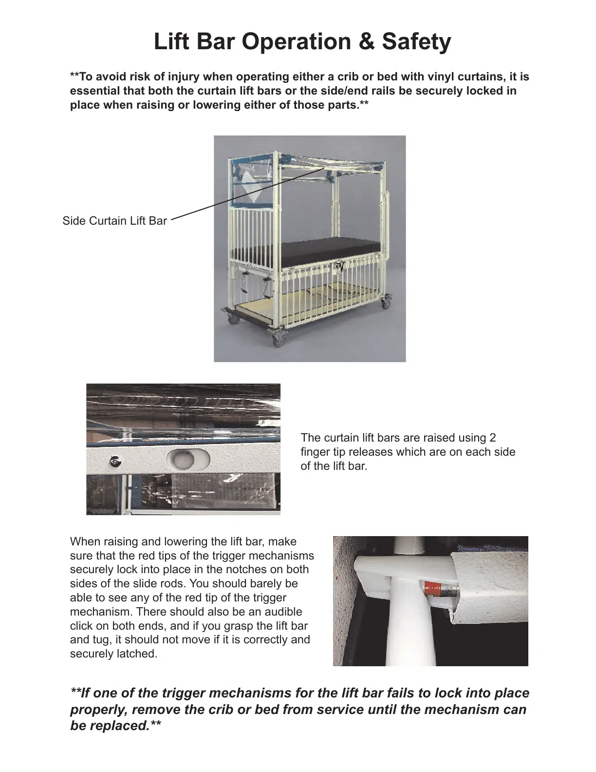 essential that both the curtain lift bars or the side/end rails be securely locked in