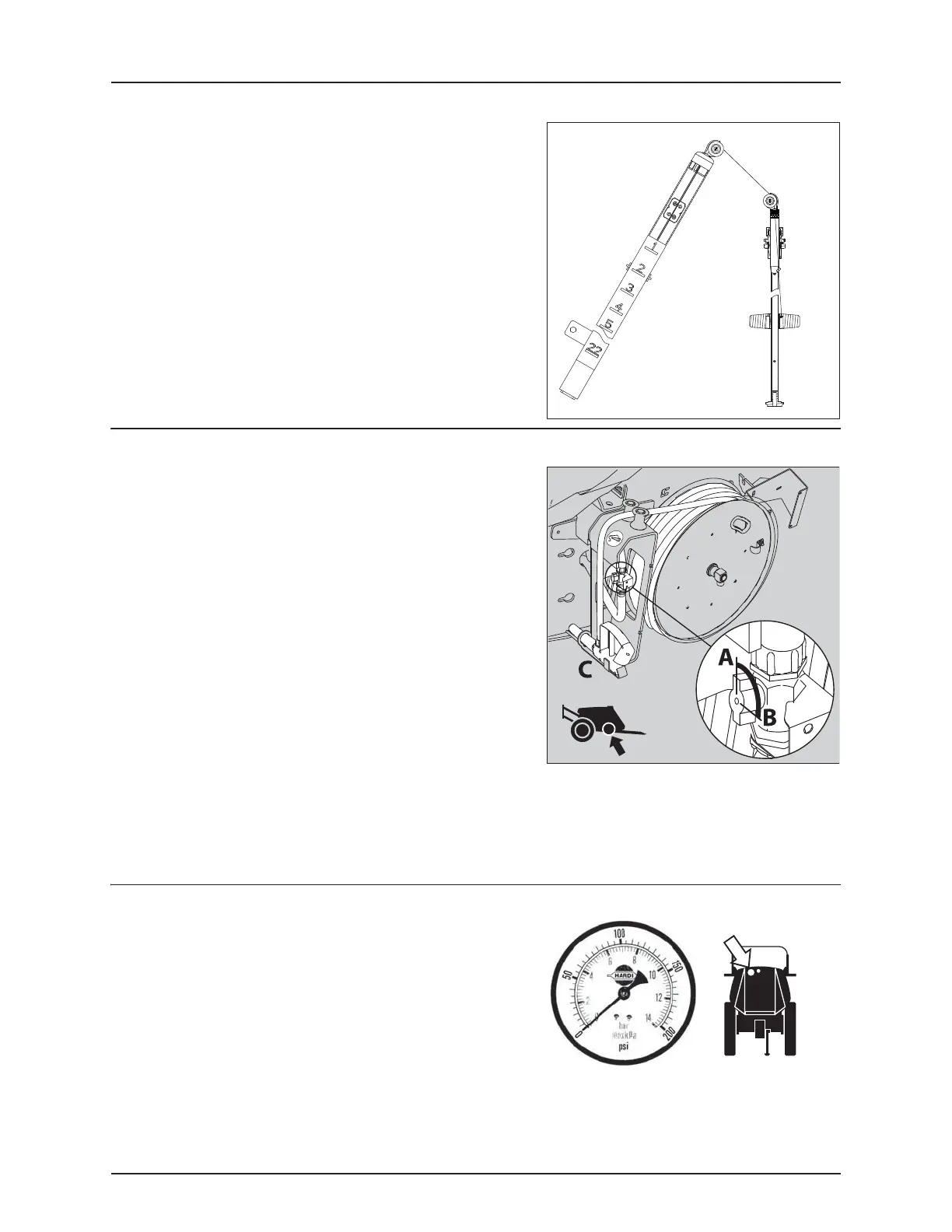 gauge measures the working pressure in the boom tubes as close to the