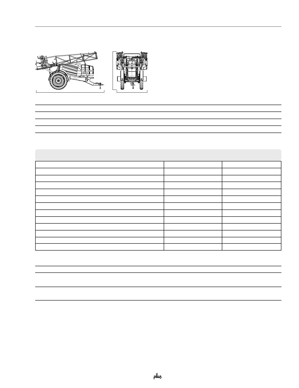 Note: All weight measurements are approximate values with booms in transport position, flush tank, chemical