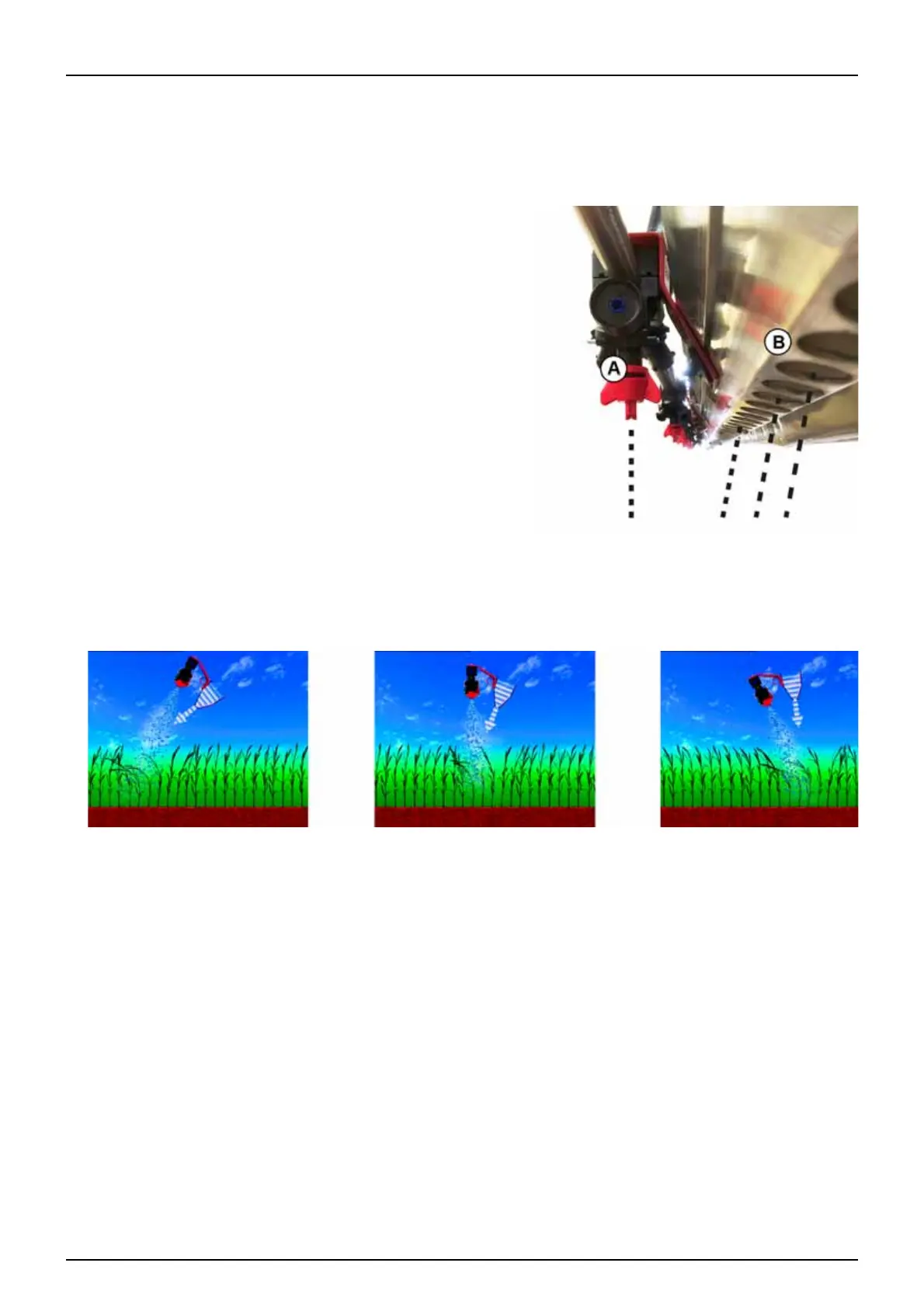 The angle between the spray nozzles (A) and air channel (B) is fixed.