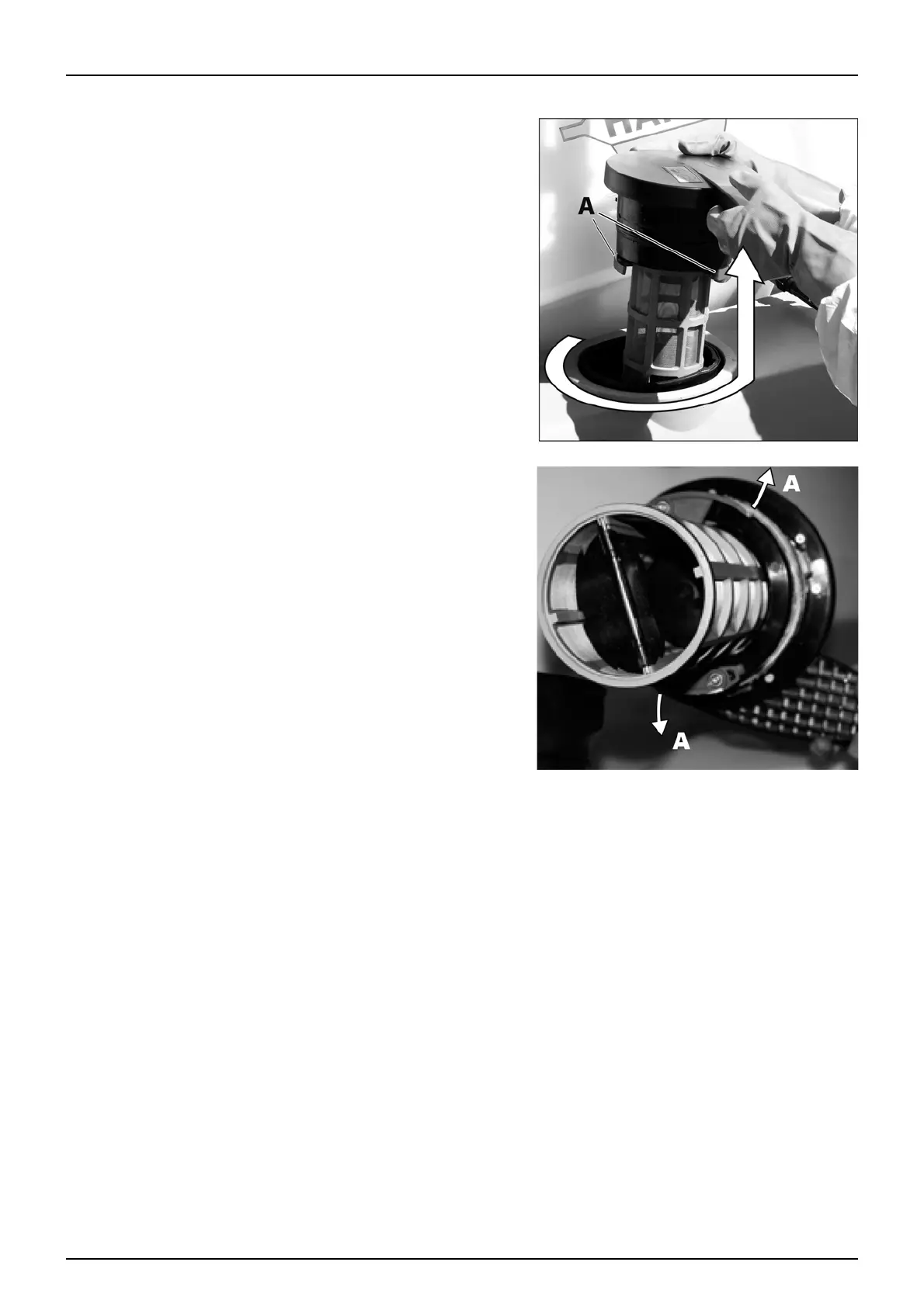 3. Separate filter element from lid/filter guide by turning locks (A)