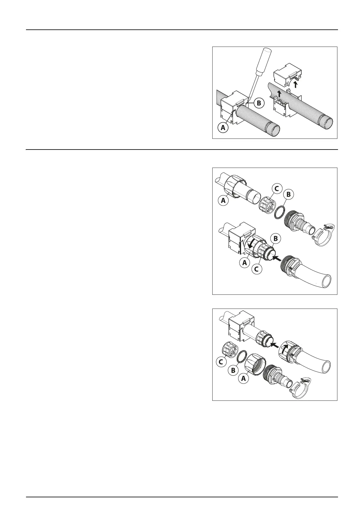 1. Check that the barbed lock ring (C) is fitted to the feed pipe with